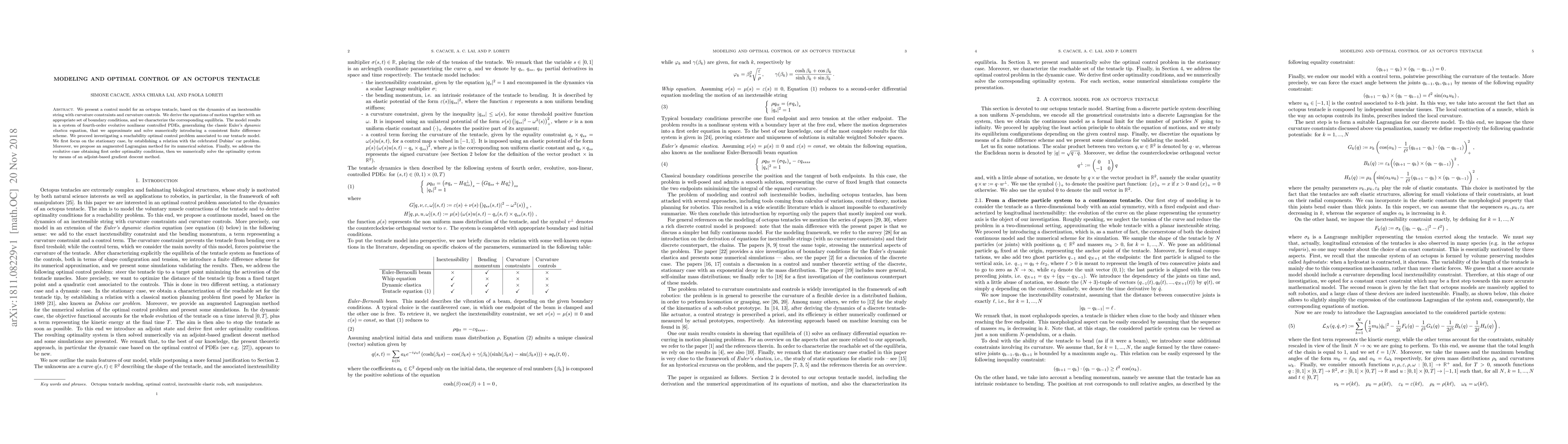 Researchers developed a mathematical model to control an octopus tentacle, using nonlinear equations that approximate its movement. They solved the model numerically and found optimal control methods for stationary and evolutive cases, shedding light on the complexity of octopus movements.