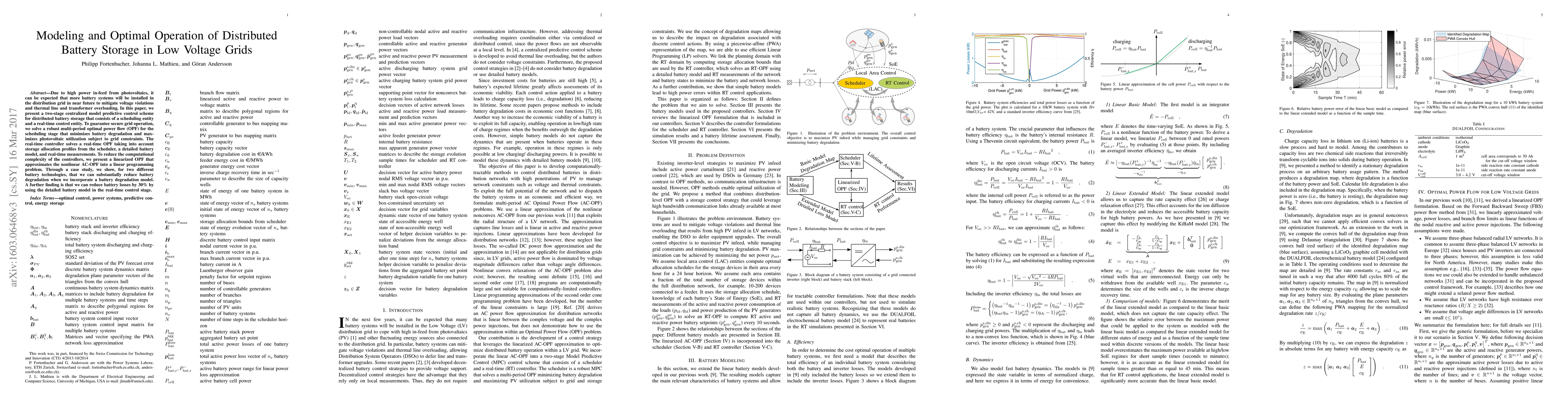 This paper proposes a two-stage centralized model predictive control scheme for distributed battery storage in low voltage grids, optimizing battery degradation and photovoltaic utilization through robust multi-period optimal power flow. It also introduces a linearized OPF to reduce computational complexity and demonstrates significant reductions in battery degradation and losses via case studies.