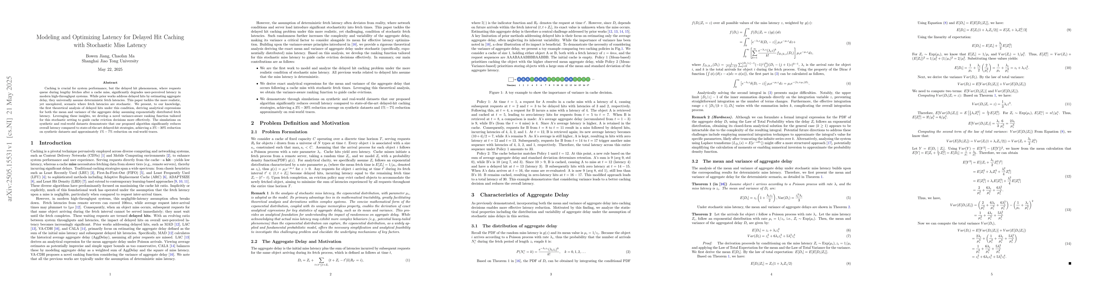 The paper presents a theoretical analysis of delayed hits under stochastic fetch latencies, deriving expressions for mean and variance of aggregate delay assuming exponentially distributed fetch latency.