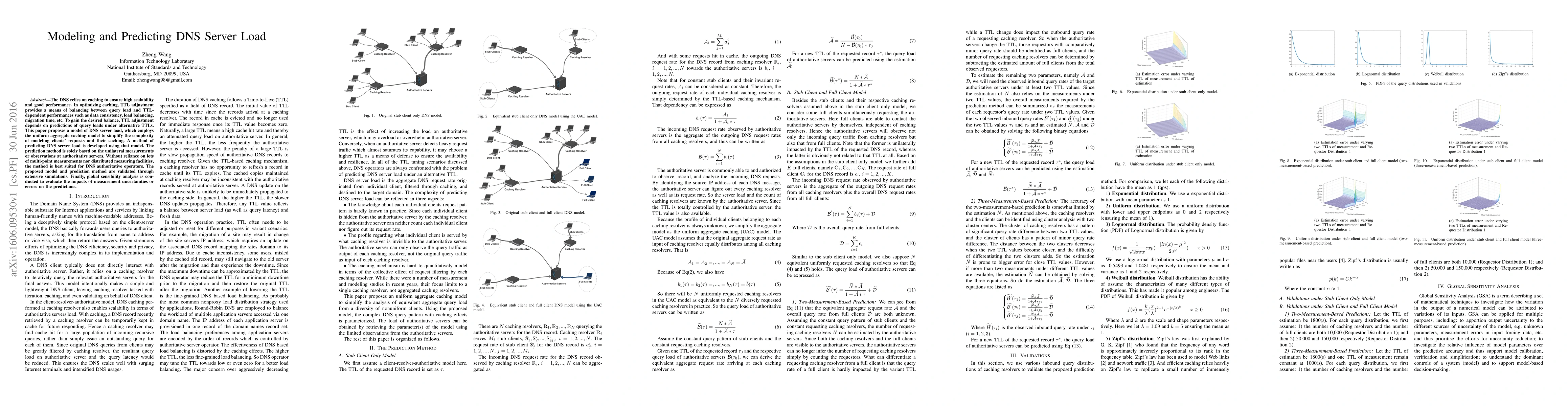 The DNS relies on caching to ensure high scalability and good performance. In optimizing caching, TTL adjustment provides a means of balancing between query load and TTL-dependent performances such as data consistency, load balancing, migration time, etc. To gain the desired balance, TTL adjustment depends on predictions of query loads under alternative TTLs. This paper proposes a model of DNS server load, which employs the uniform aggregate caching model to simplify the complexity of modeling clients' requests and their caching. A method of predicting DNS server load is developed using that model. The prediction method is solely based on the unilateral measurements or observations at authoritative servers. Without reliance on lots of multi-point measurements nor distributed measuring facilities, the method is best suited for DNS authoritative operators. The proposed model and prediction method are validated through extensive simulations. Finally, global sensibility analysis is conducted to evaluate the impacts of measurement uncertainties or errors on the predictions.