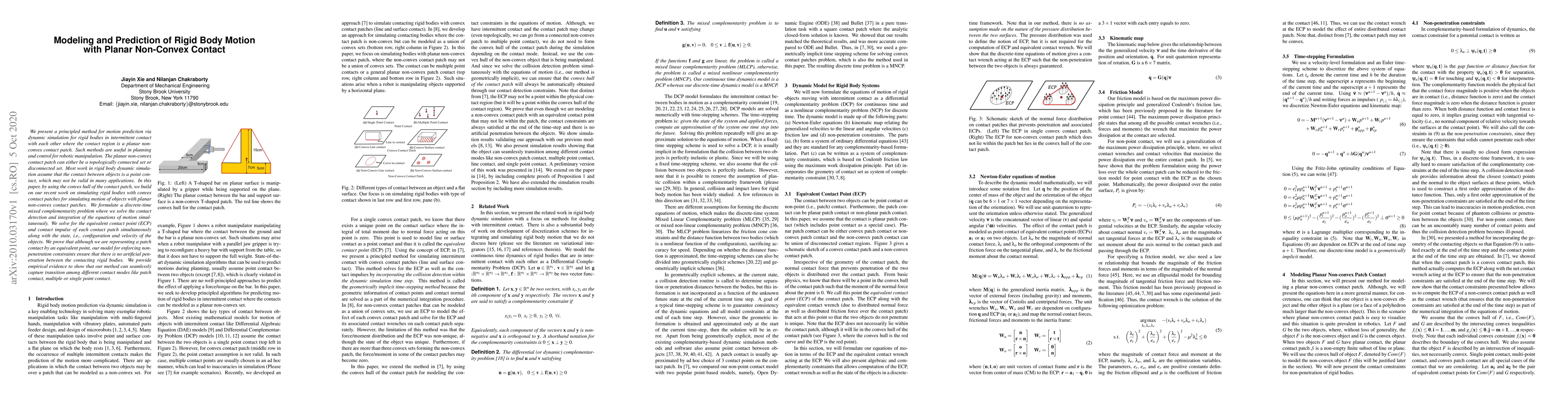 This paper introduces a method for predicting rigid body motion during intermittent contact using dynamic simulation, focusing on planar non-convex contact patches. It formulates a mixed complementarity problem to solve for contact detection and motion integration, ensuring no artificial penetration and capturing transitions between different contact modes.