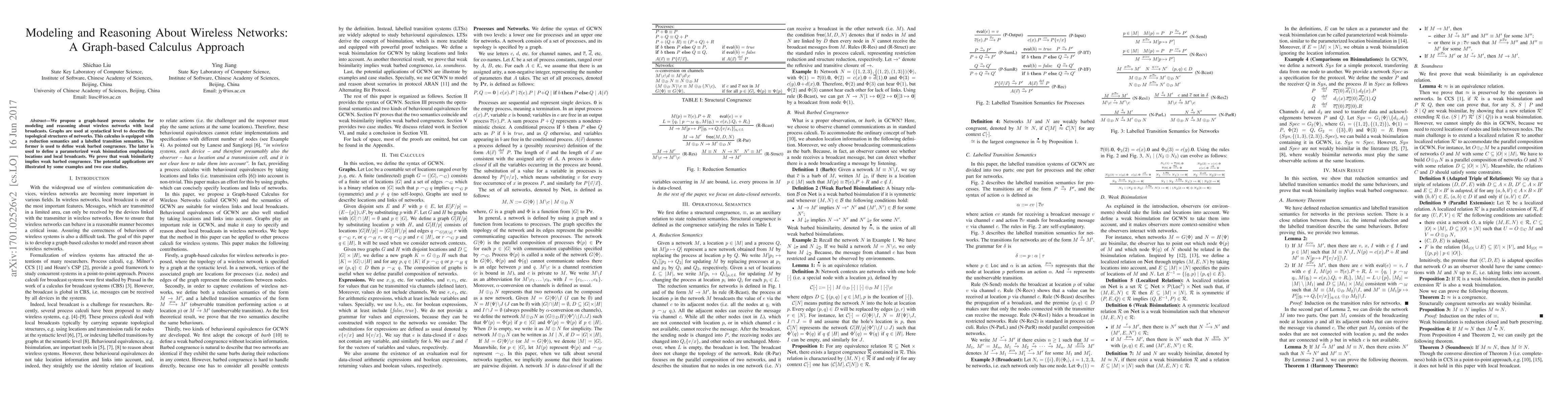 We propose a graph-based process calculus for modeling and reasoning about wireless networks with local broadcasts. Graphs are used at syntactical level to describe the topological structures of networks. This calculus is equipped with a reduction semantics and a labelled transition semantics. The former is used to define weak barbed congruence. The latter is used to define a parameterized weak bisimulation emphasizing locations and local broadcasts. We prove that weak bisimilarity implies weak barbed congruence. The potential applications are illustrated by some examples and two case studies.