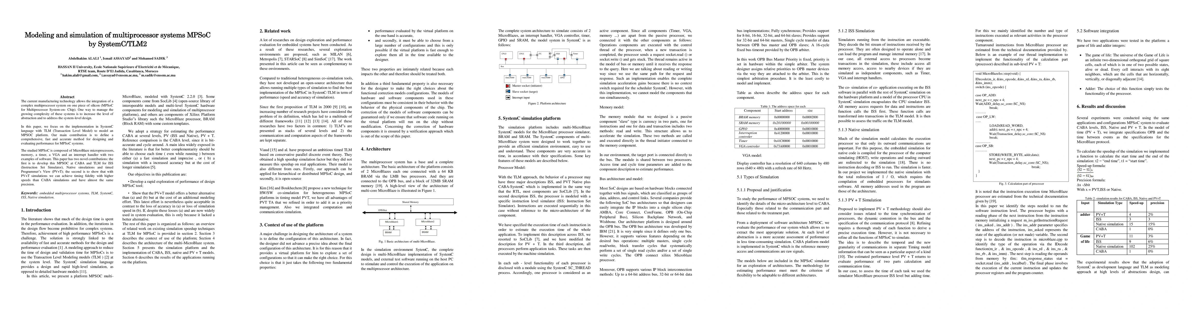 This paper presents a SystemC/TLM2 modeling approach for multiprocessor system-on-chip (MPSoC) platforms, focusing on MicroBlaze microprocessors and other components. It demonstrates faster and equally accurate timing fidelity in PV+T simulations compared to CABA simulations.