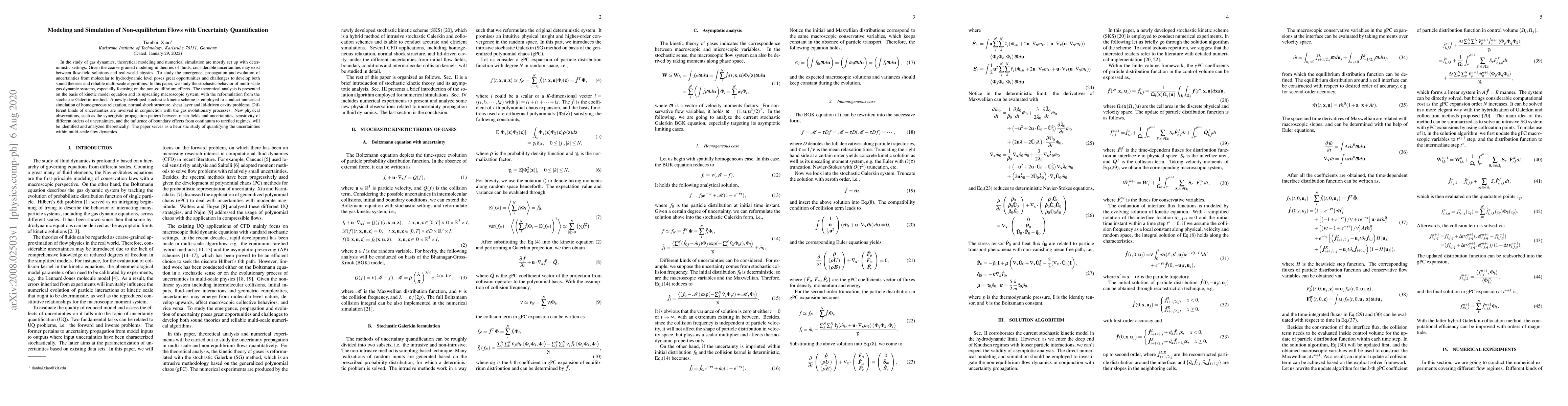 In the study of gas dynamics, theoretical modeling and numerical simulation are mostly set up with deterministic settings. Given the coarse-grained modeling in theories of fluids, considerable uncertainties may exist between flow-field solutions and real-world physics. To study the emergence, propagation and evolution of uncertainties from molecular to hydrodynamic level poses great opportunities and challenges to develop both sound theories and reliable multi-scale algorithms. In this paper, we study the stochastic behavior of multi-scale gas dynamic systems, especially focusing on the non-equilibrium effects. The theoretical analysis is presented on the basis of kinetic model equation and its upscaling macroscopic system, with the reformulation from the stochastic Galerkin method. A newly developed stochastic kinetic scheme is employed to conduct numerical simulation of homogeneous relaxation, normal shock structure, shear layer and lid-driven cavity problems. Different kinds of uncertainties are involved in conjunction with the gas evolutionary processes. New physical observations, such as the synergistic propagation pattern between mean fields and uncertainties, sensitivity of different orders of uncertainties, and the influence of boundary effects from continuum to rarefied regimes, will be identified and analyzed theoretically. The paper serves as a heuristic study of quantifying the uncertainties within multi-scale flow dynamics.