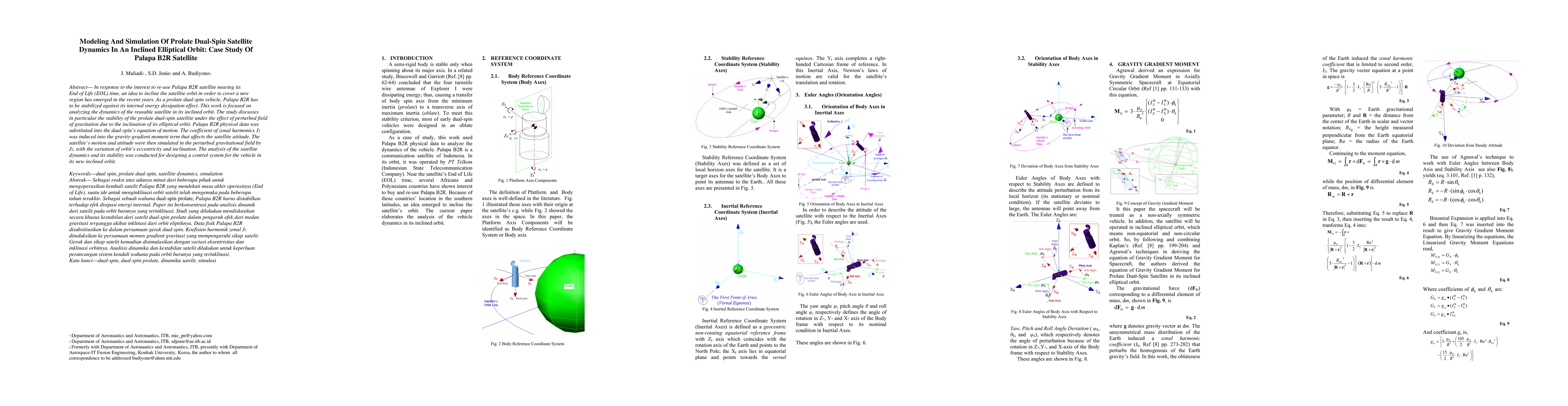 This paper models and simulates the dynamics of the prolate dual-spin Palapa B2R satellite in an inclined elliptical orbit, focusing on stability under gravitational perturbations due to J2. The study aims to design a control system for the satellite's re-use in a new region after its end-of-life.
