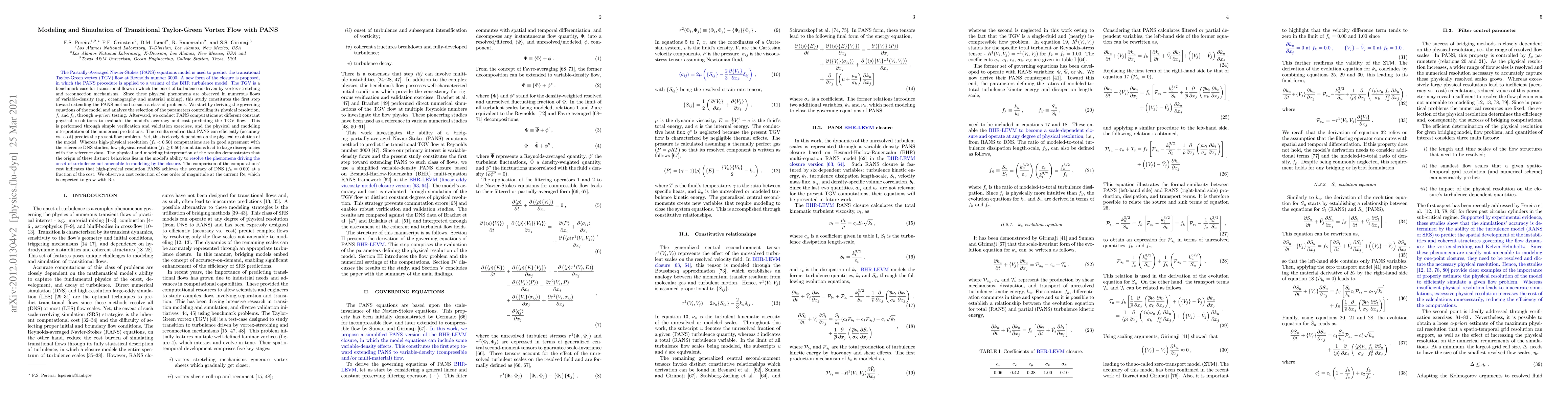 Researchers used PANS equations to model transitional Taylor-Green vortex flow at Re=3000, achieving accurate predictions while reducing computational cost, depending on physical resolution.