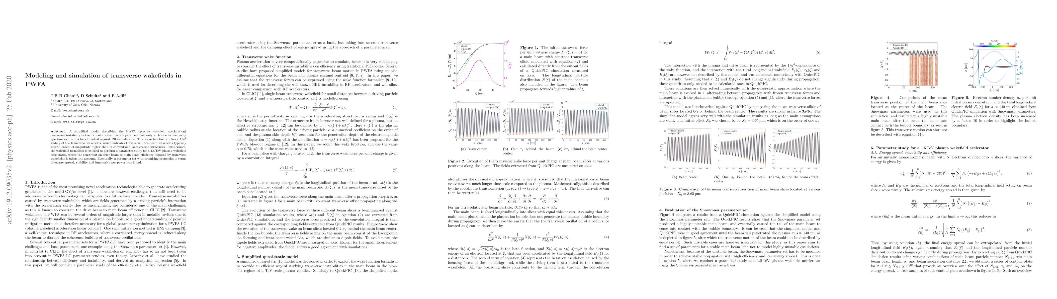A simplified model describing the PWFA (plasma wakefield acceleration) transverse instability in the form of a wake function parameterized only with an effective cavity aperture radius $a$ is benchmarked against PIC-simulations. This wake function implies a $1/a^4$ scaling of the transverse wakefields, which indicates transverse intra-beam wakefields typically several orders of magnitude higher than in conventional acceleration structures. Furthermore, the wakefield formalism is utilized to perform a parameter study for a \SI{1.5}{\tera\electronvolt} plasma wakefield accelerator, where the constraint on drive beam to main beam efficiency imposed by transverse wakefields is taken into account. Eventually, a parameter set with promising properties in terms of energy spread, stability and luminosity per power was found.