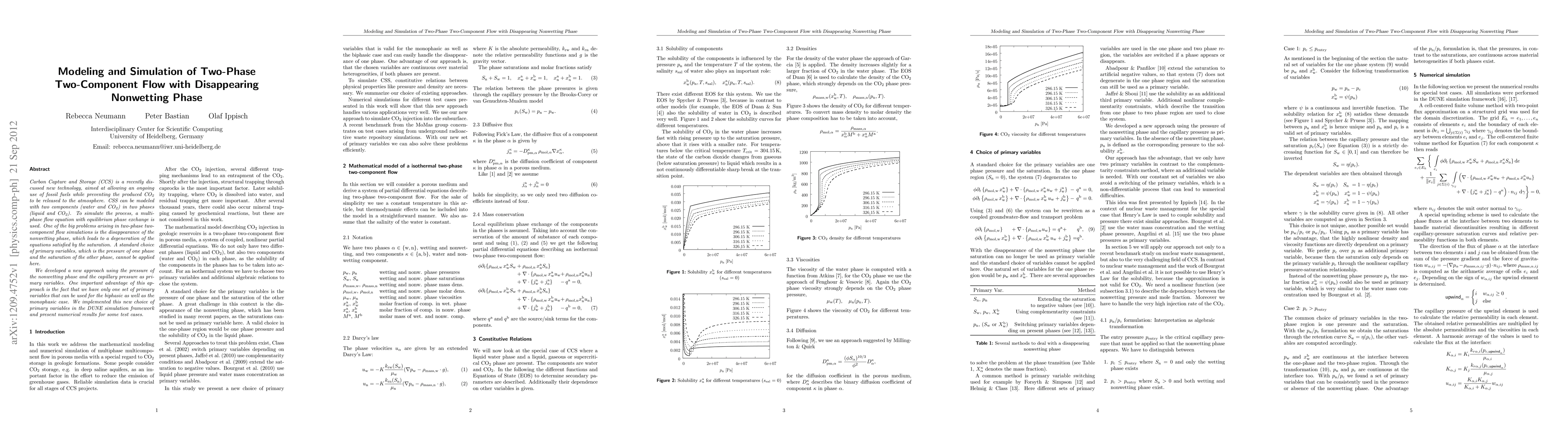 This paper develops a new modeling approach for simulating two-phase two-component flow in Carbon Capture and Storage (CCS) processes, addressing the issue of nonwetting phase disappearance. It proposes using the nonwetting phase pressure and capillary pressure as primary variables, implemented in the DUNE framework, providing a unified solution for both biphasic and monophasic cases.
