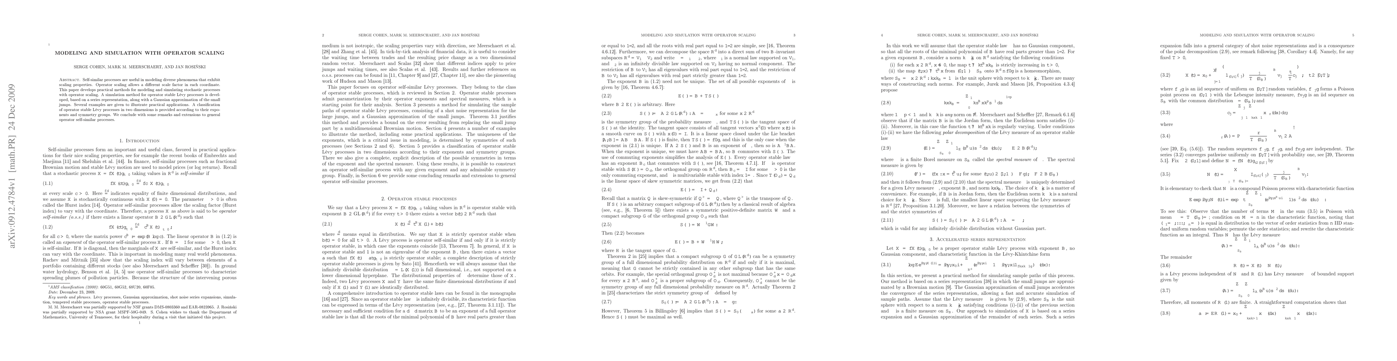 This paper develops a method for modeling and simulating stochastic processes with operator scaling, allowing diverse phenomena to exhibit scaling properties in each coordinate. Practical applications and extensions to general operator self-similar processes are also provided.