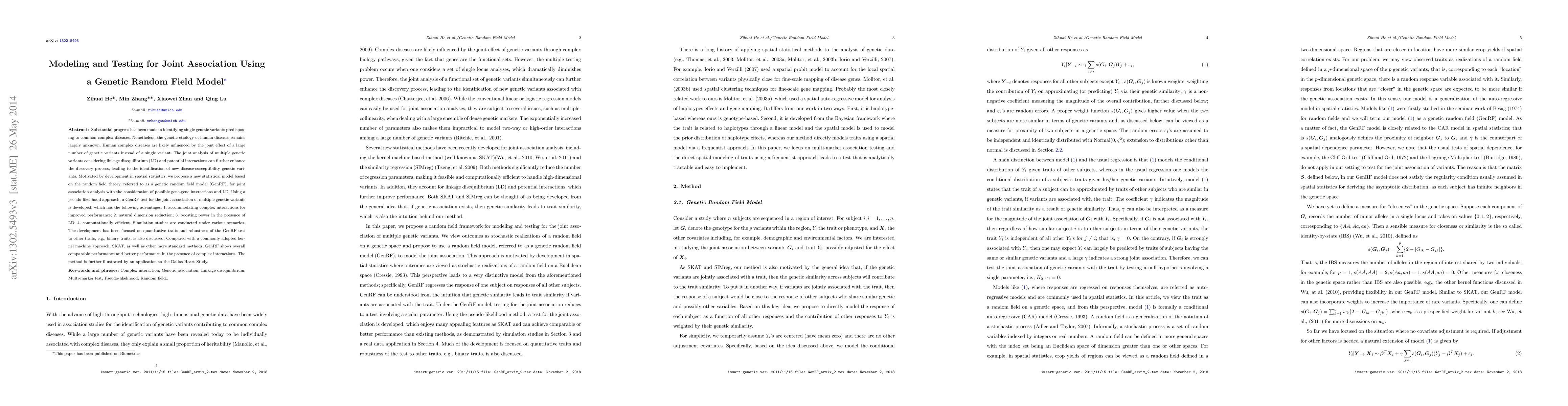 This paper proposes a genetic random field model (GenRF) for joint association analysis of multiple genetic variants, considering gene-gene interactions and linkage disequilibrium. The GenRF test, developed using a pseudo-likelihood approach, demonstrates improved performance, natural dimension reduction, and computational efficiency compared to existing methods like SKAT.