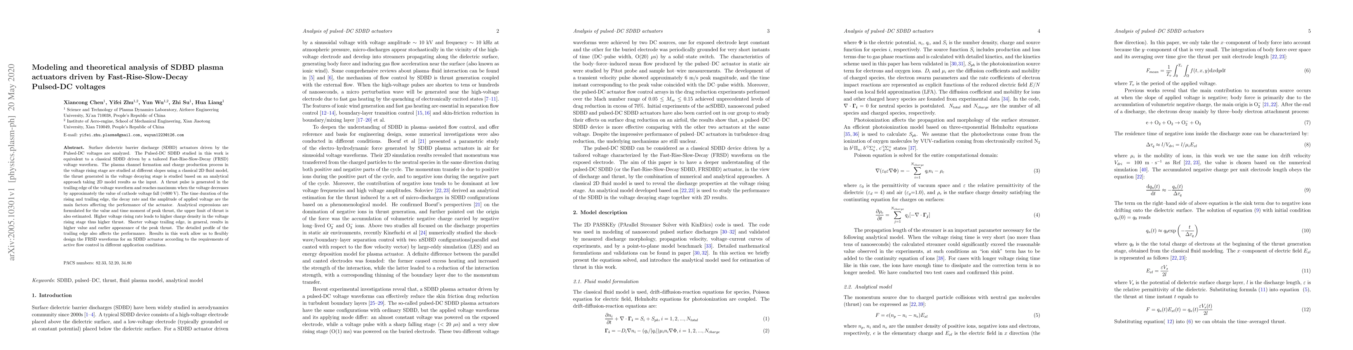 Researchers analyzed SDBD plasma actuators driven by Fast-Rise-Slow-Decay Pulsed-DC voltages to understand their performance and design flexible waveforms for active flow control.