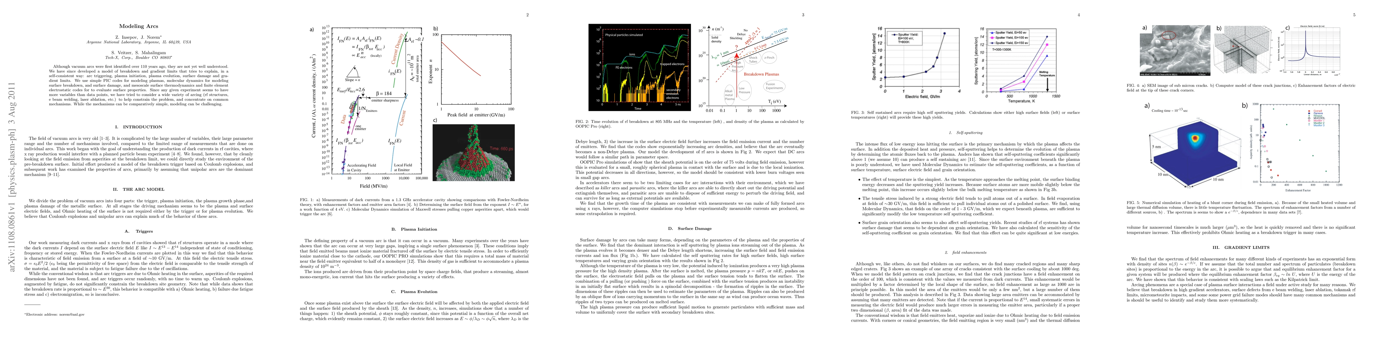 Although vacuum arcs were first identified over 110 years ago, they are not yet well understood. We have since developed a model of breakdown and gradient limits that tries to explain, in a self-consistent way: arc triggering, plasma initiation, plasma evolution, surface damage and gra- dient limits. We use simple PIC codes for modeling plasmas, molecular dynamics for modeling surface breakdown, and surface damage, and mesoscale surface thermodynamics and finite element electrostatic codes for to evaluate surface properties. Since any given experiment seems to have more variables than data points, we have tried to consider a wide variety of arcing (rf structures, e beam welding, laser ablation, etc.) to help constrain the problem, and concentrate on common mechanisms. While the mechanisms can be comparatively simple, modeling can be challenging.