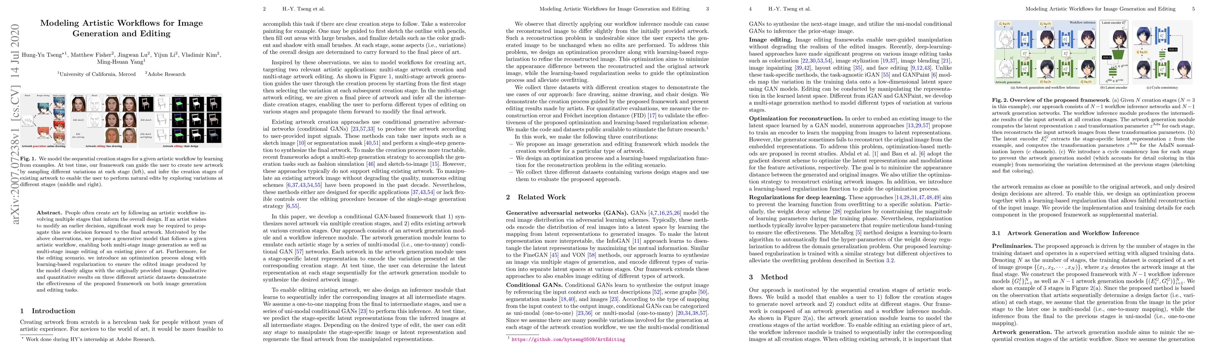 This paper proposes a generative model that mimics an artist's workflow for multi-stage image generation and editing, incorporating an optimization process to ensure edits align with the original artwork. Results show the model's effectiveness across various artistic datasets.