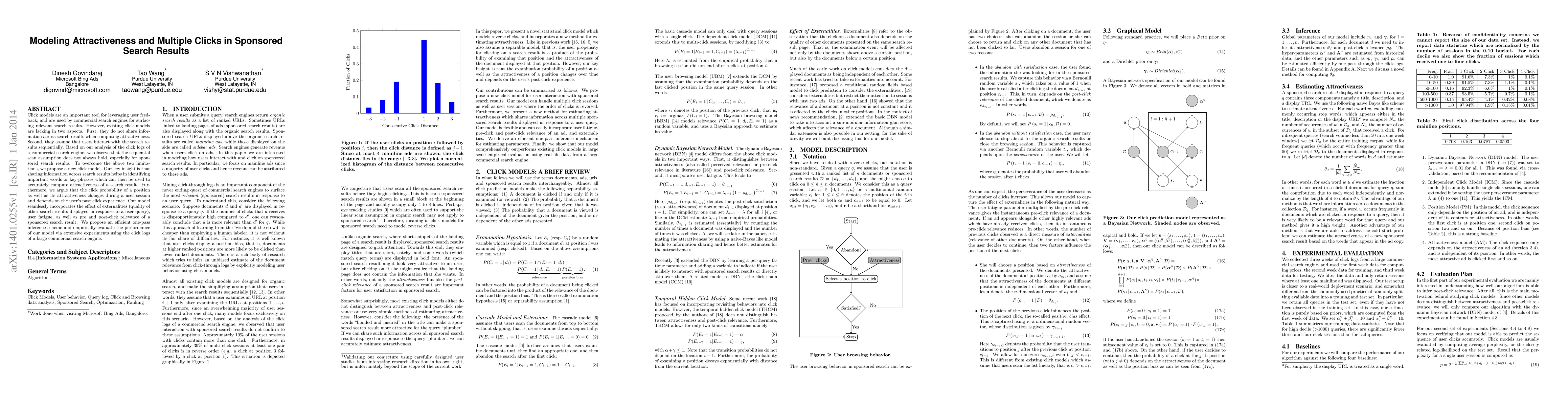 This paper proposes a new click model to improve sponsored search results by addressing limitations in existing models, specifically the lack of information sharing across results and the assumption of sequential interaction. The new model shares information across search results to identify key phrases and accounts for changes in attractiveness and click probability during user sessions.