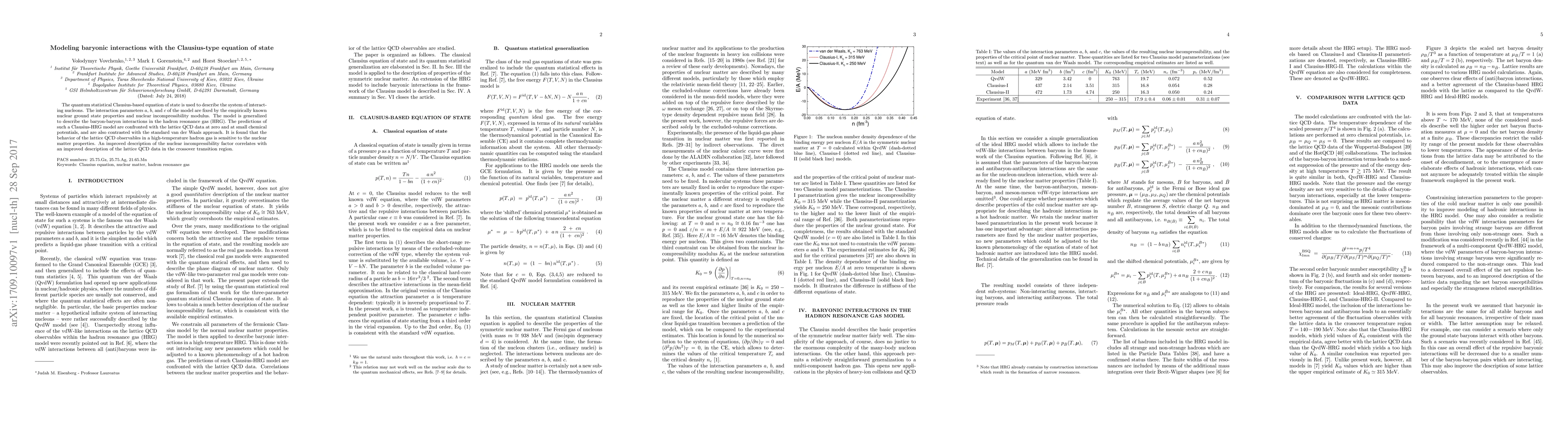 The quantum statistical Clausius-based equation of state is used to describe the system of interacting nucleons. The interaction parameters $a$, $b$, and $c$ of the model are fixed by the empirically known nuclear ground state properties and nuclear incompressibility modulus. The model is generalized to describe the baryon-baryon interactions in the hadron resonance gas (HRG). The predictions of such a Clausius-HRG model are confronted with the lattice QCD data at zero and at small chemical potentials, and are also contrasted with the standard van der Waals approach. It is found that the behavior of the lattice QCD observables in a high-temperature hadron gas is sensitive to the nuclear matter properties. An improved description of the nuclear incompressibility factor correlates with an improved description of the lattice QCD data in the crossover transition region.