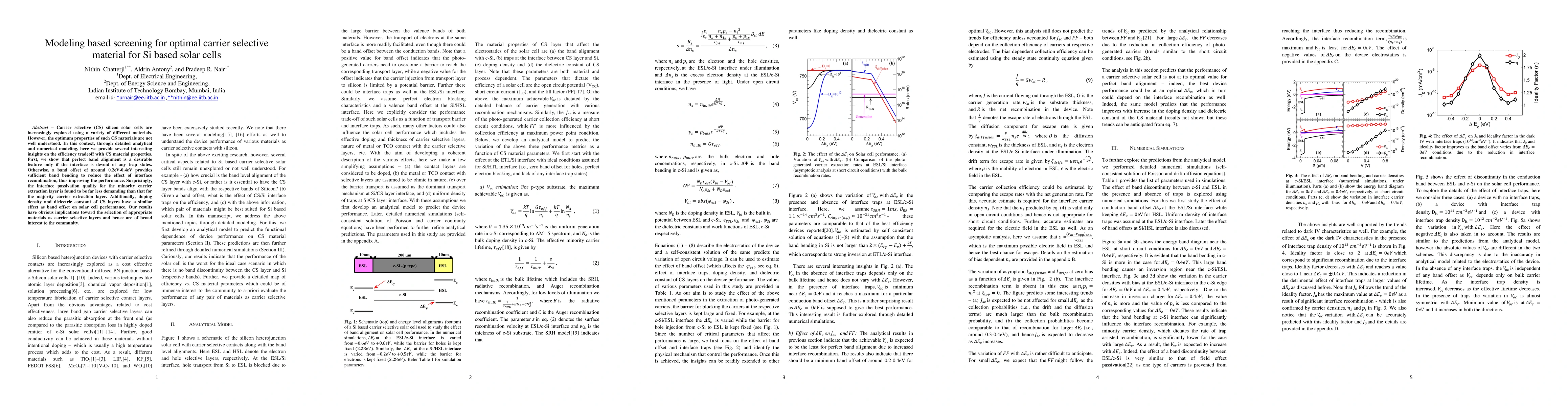 Research identifies optimal carrier selective material properties for silicon-based solar cells, including a band offset of 0.2-0.4eV to reduce recombination, with implications for selecting suitable materials.