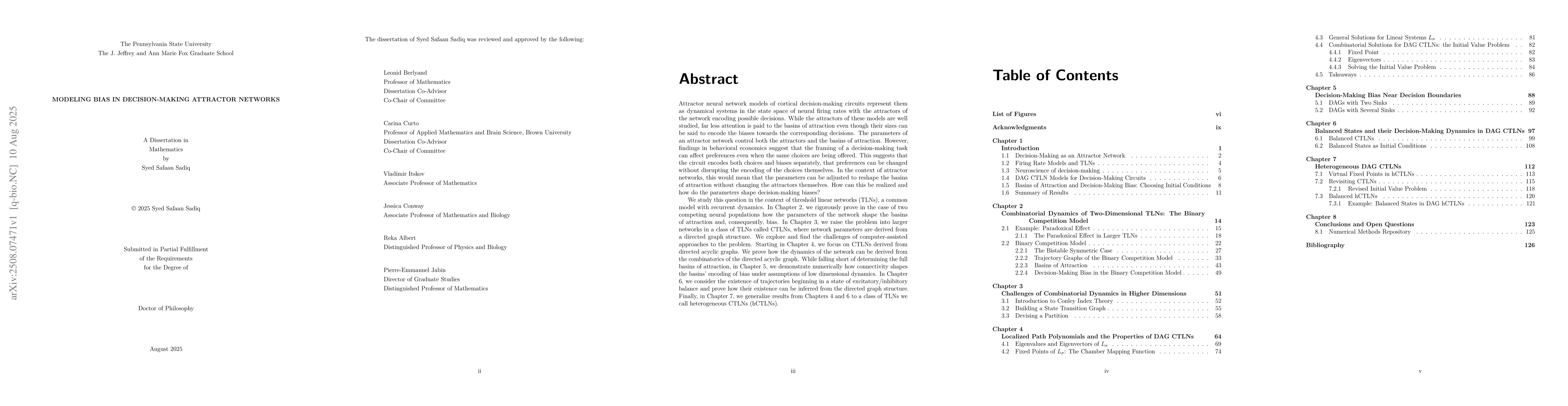 Attractor neural network models of cortical decision-making circuits represent them as dynamical systems in the state space of neural firing rates with the attractors of the network encoding possible decisions. While the attractors of these models are well studied, far less attention is paid to the basins of attraction even though their sizes can be said to encode the biases towards the corresponding decisions. The parameters of an attractor network control both the attractors and the basins of attraction. However, findings in behavioral economics suggest that the framing of a decision-making task can affect preferences even when the same choices are being offered. This suggests that the circuit encodes both choices and biases separately, that preferences can be changed without disrupting the encoding of the choices themselves. In the context of attractor networks, this would mean that the parameters can be adjusted to reshape the basins of attraction without changing the attractors themselves. How can this be realized and how do the parameters shape decision-making biases? In this PhD thesis we study this question mathematically in the context of threshold linear networks, a common firing rate model used in computational neuroscience. (Note: This is an abbreviated abstract. Please see the document for the full abstract.)