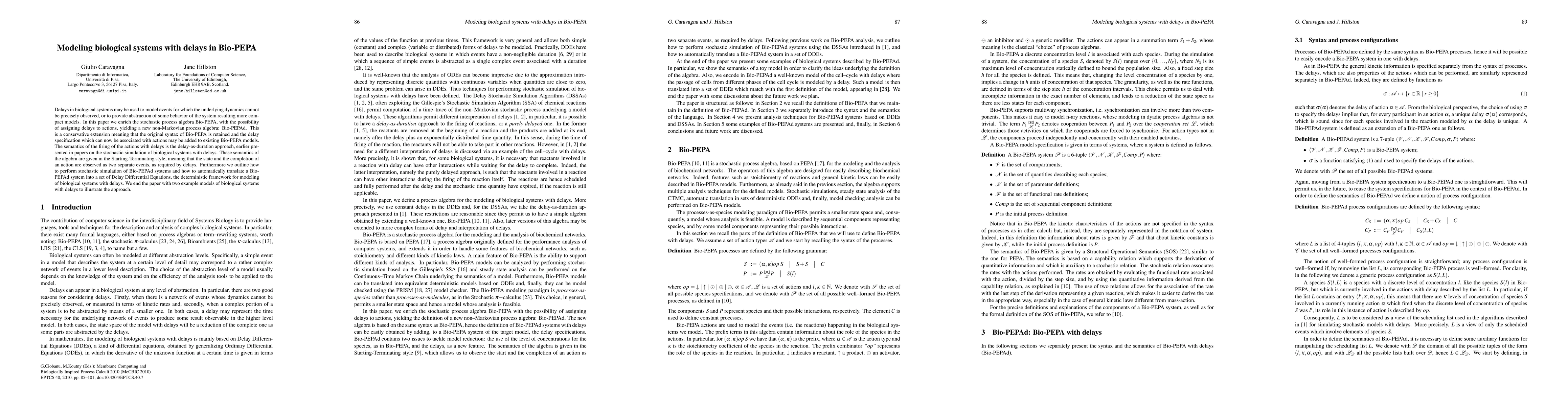 This paper introduces Bio-PEPAd, a non-Markovian extension of Bio-PEPA that allows delays in actions, enabling more compact and abstract models of biological systems. It outlines the semantics and simulation methods for Bio-PEPAd, and demonstrates its application through example models.