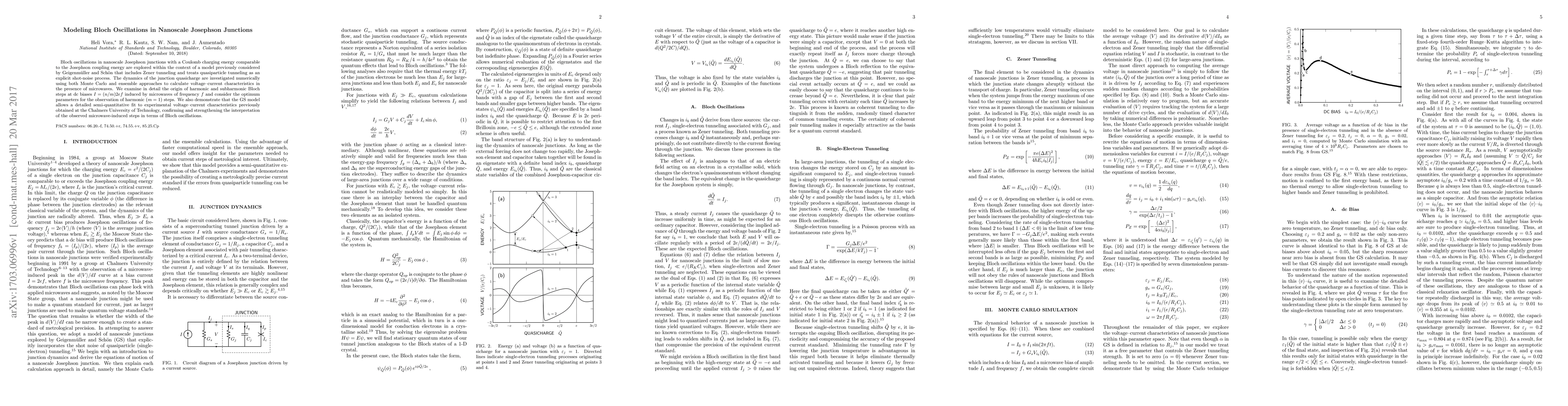 This paper models Bloch oscillations in nanoscale Josephson junctions, focusing on the interplay between Coulomb charging and Josephson coupling energies. The study uses Monte Carlo and ensemble methods to numerically investigate the dynamics and voltage-current characteristics, revealing the conditions for harmonic and subharmonic Bloch steps induced by microwaves.