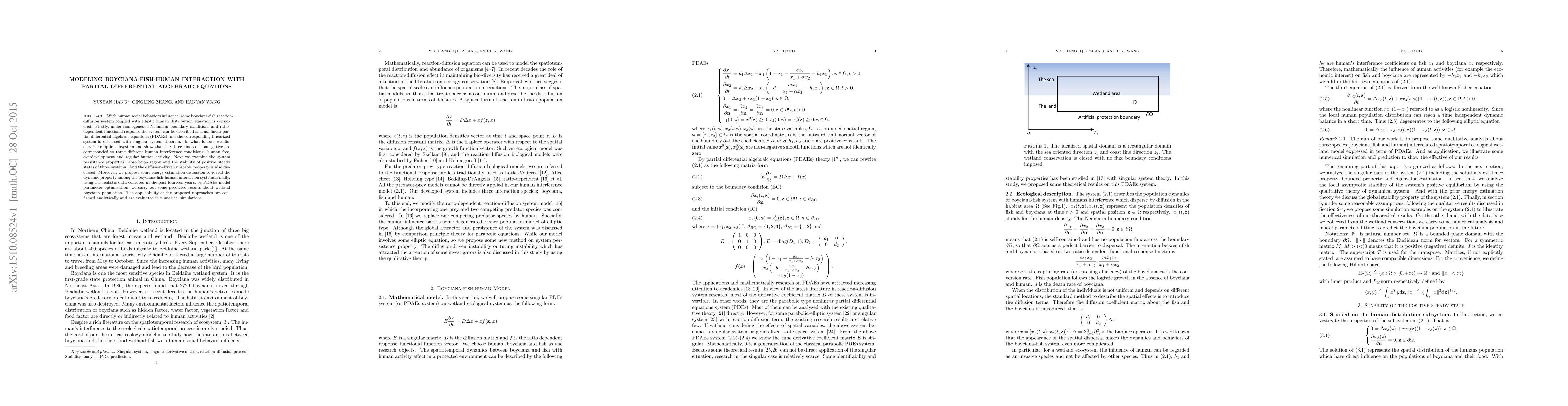 Researchers modeled interactions between boyciana-fish and humans using partial differential algebraic equations, predicting population dynamics in wetlands based on human activity levels.