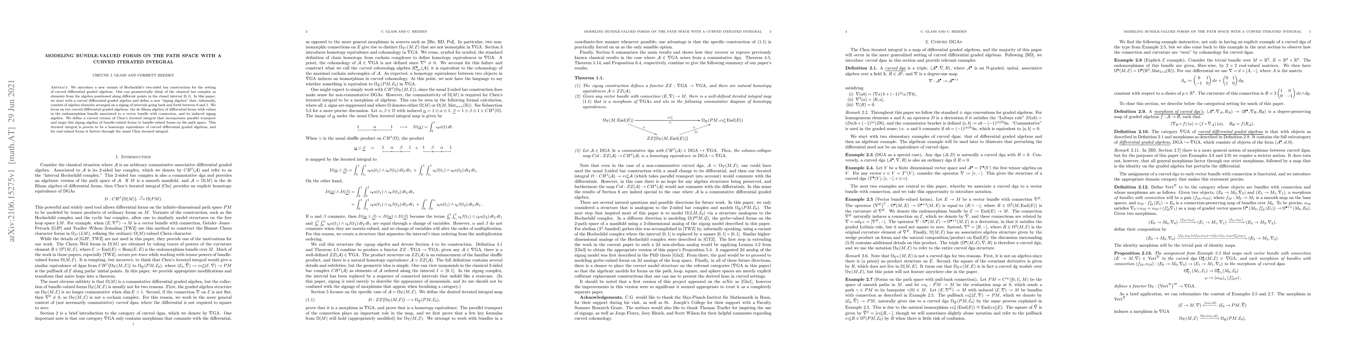 This paper introduces a new variant of Hochschild's bar construction for curved differential graded algebras, defining a "zigzag algebra" that arranges algebra elements along zigzag intervals. It applies this to the de Rham algebra of bundle-valued forms, mapping it via a curved iterated integral to forms on the path space, proving the integral a homotopy equivalence.