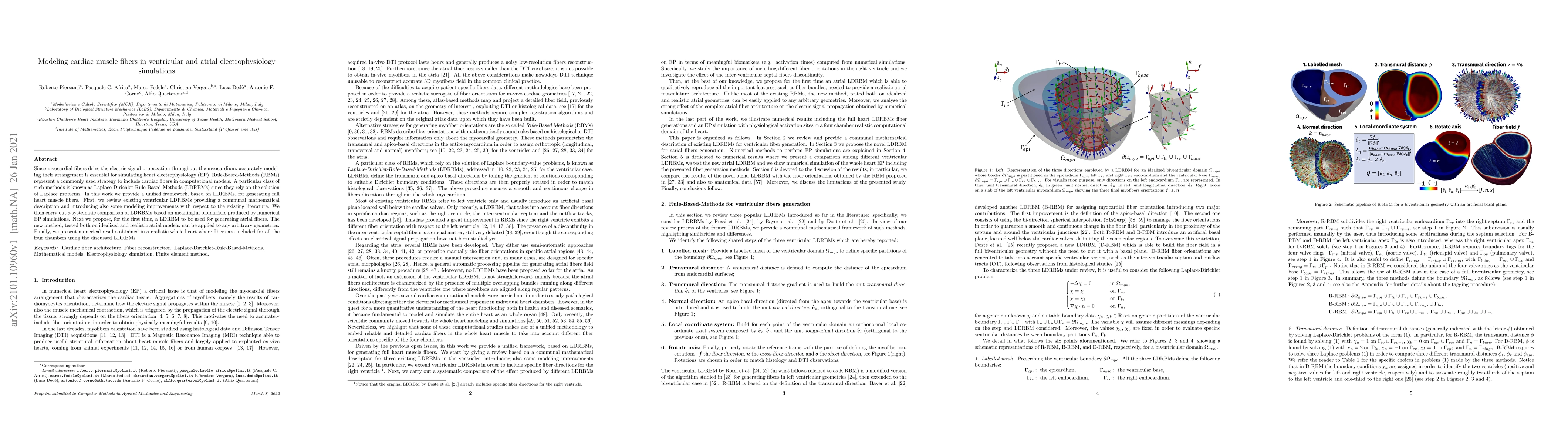 This paper presents a unified framework based on Laplace-Dirichlet-Rule-Based-Methods (LDRBMs) for generating cardiac muscle fibers in both ventricular and atrial electrophysiology simulations, including a novel LDRBM for atrial fibers and comparisons to existing ventricular methods.