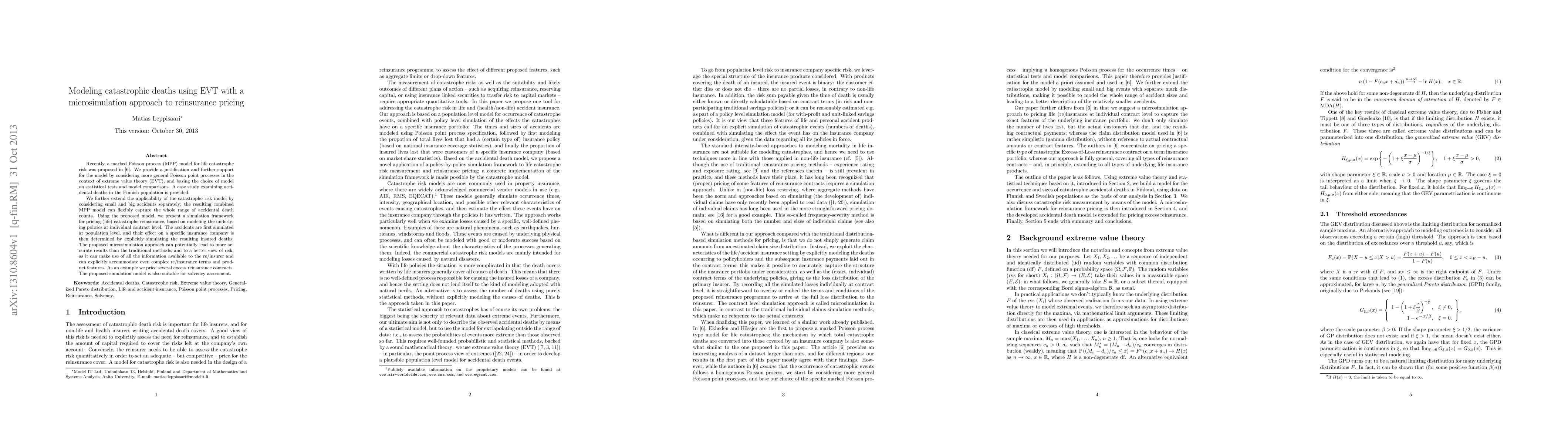 Recently, a marked Poisson process (MPP) model for life catastrophe risk was proposed in [6]. We provide a justification and further support for the model by considering more general Poisson point processes in the context of extreme value theory (EVT), and basing the choice of model on statistical tests and model comparisons. A case study examining accidental deaths in the Finnish population is provided. We further extend the applicability of the catastrophe risk model by considering small and big accidents separately; the resulting combined MPP model can flexibly capture the whole range of accidental death counts. Using the proposed model, we present a simulation framework for pricing (life) catastrophe reinsurance, based on modeling the underlying policies at individual contract level. The accidents are first simulated at population level, and their effect on a specific insurance company is then determined by explicitly simulating the resulting insured deaths. The proposed microsimulation approach can potentially lead to more accurate results than the traditional methods, and to a better view of risk, as it can make use of all the information available to the re/insurer and can explicitly accommodate even complex re/insurance terms and product features. As an example we price several excess reinsurance contracts. The proposed simulation model is also suitable for solvency assessment.