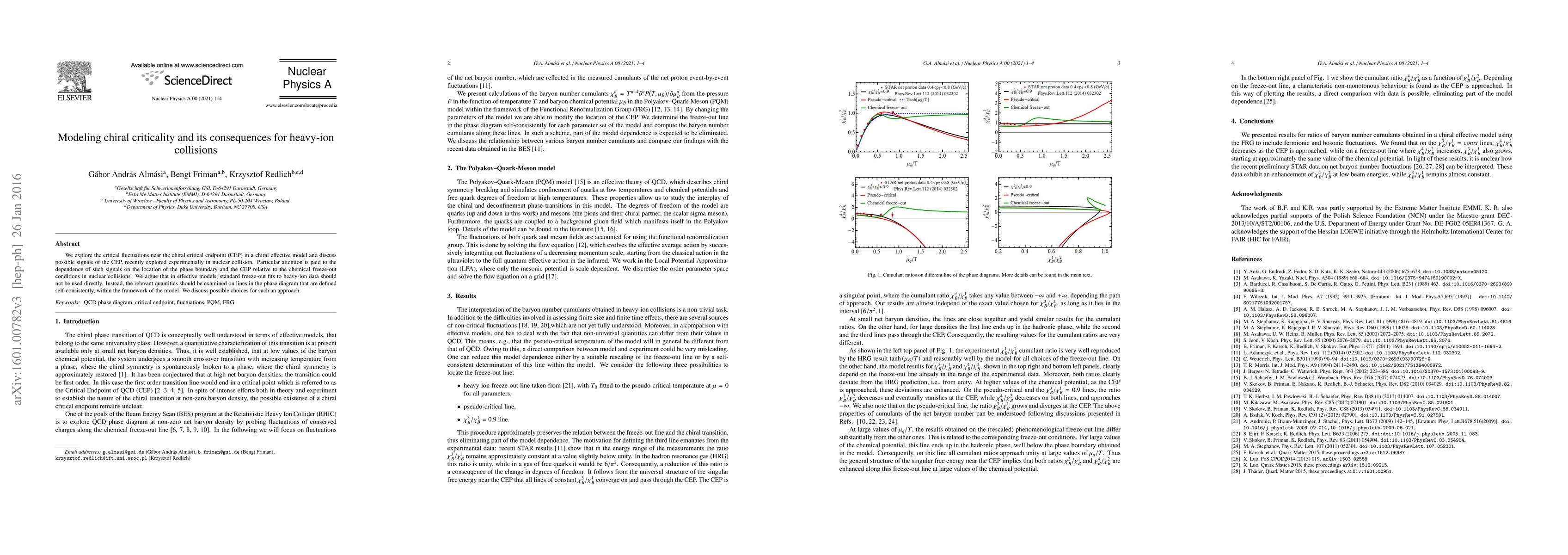 We explore the critical fluctuations near the chiral critical endpoint (CEP) in a chiral effective model and discuss possible signals of the CEP, recently explored experimentally in nuclear collision. Particular attention is paid to the dependence of such signals on the location of the phase boundary and the CEP relative to the chemical freeze-out conditions in nuclear collisions. We argue that in effective models, standard freeze-out fits to heavy-ion data should not be used directly. Instead, the relevant quantities should be examined on lines in the phase diagram that are defined self-consistently, within the framework of the model. We discuss possible choices for such an approach.