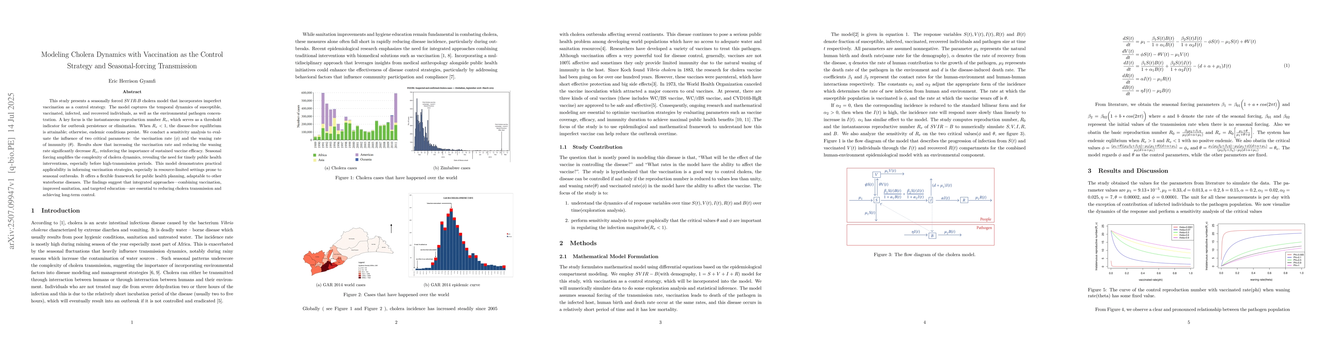 This study presents a seasonally forced cholera model that incorporates imperfect vaccination as a control strategy. The model captures the temporal dynamics of susceptible, vaccinated, infected, and recovered individuals, as well as the environmental pathogen concentration. A key focus is the instantaneous reproduction number, which serves as a threshold indicator for outbreak persistence or elimination. When reproduction number, the disease-free equilibrium is attainable; otherwise, endemic conditions persist. We conduct a sensitivity analysis to evaluate the influence of two critical parameters: the vaccination rate and the waning rate of immunity. Results show that increasing the vaccination rate and reducing the waning rate significantly decrease reproduction number, reinforcing the importance of sustained vaccine efficacy. Seasonal forcing amplifies the complexity of cholera dynamics, revealing the need for timely public health interventions, especially before high-transmission periods. This model demonstrates practical applicability in informing vaccination strategies, especially in resource-limited settings prone to seasonal outbreaks. It offers a flexible framework for public health planning, adaptable to other waterborne diseases. The findings suggest that integrated approaches combining vaccination, improved sanitation, and targeted education are essential to reducing cholera transmission and achieving long-term control.