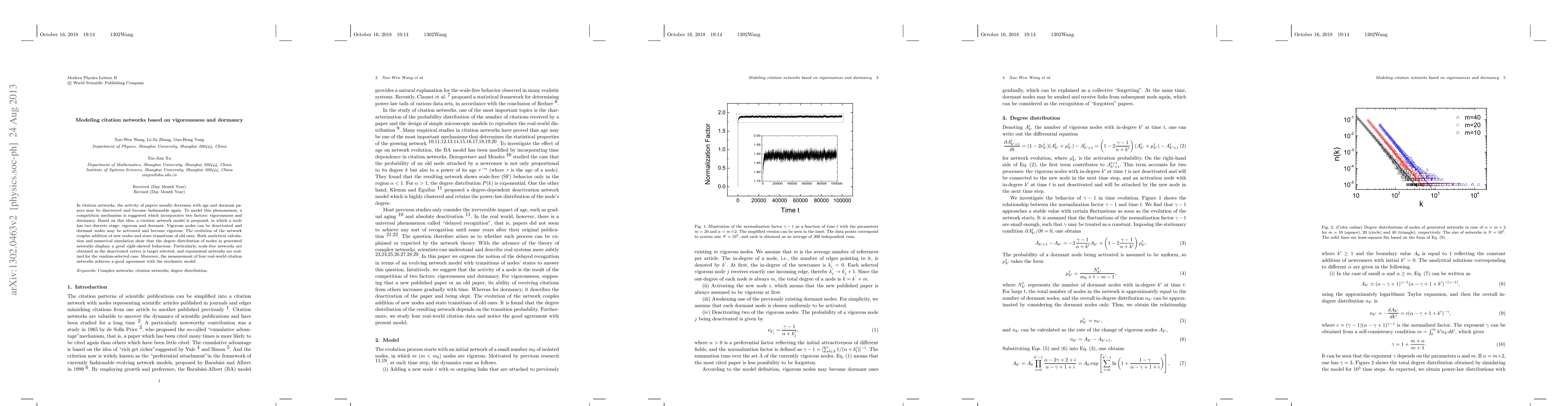 This paper proposes a citation network model that incorporates vigorousness and dormancy to simulate the lifecycle of papers. The model features nodes transitioning between vigorous and dormant states, with new nodes added and state changes influencing network evolution, resulting in scale-free or exponential degree distributions depending on the selection method for deactivating nodes.