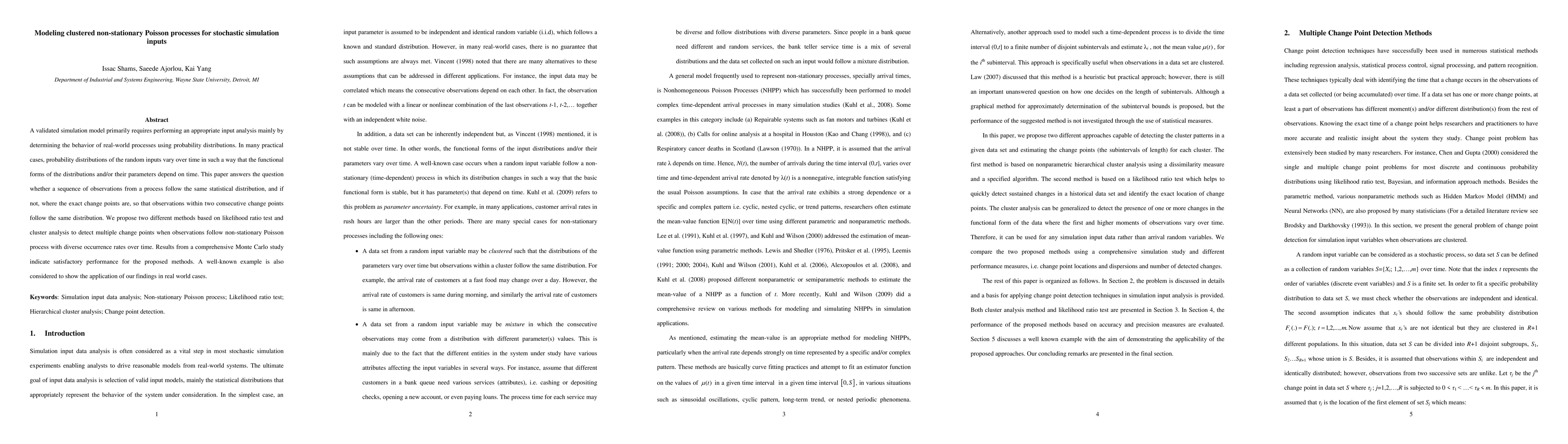 A validated simulation model primarily requires performing an appropriate input analysis mainly by determining the behavior of real-world processes using probability distributions. In many practical cases, probability distributions of the random inputs vary over time in such a way that the functional forms of the distributions and/or their parameters depend on time. This paper answers the question whether a sequence of observations from a process follow the same statistical distribution, and if not, where the exact change points are, so that observations within two consecutive change points follow the same distribution. We propose two different methods based on likelihood ratio test and cluster analysis to detect multiple change points when observations follow non-stationary Poisson process with diverse occurrence rates over time. Results from a comprehensive Monte Carlo study indicate satisfactory performance for the proposed methods. A well-known example is also considered to show the application of our findings in real world cases.