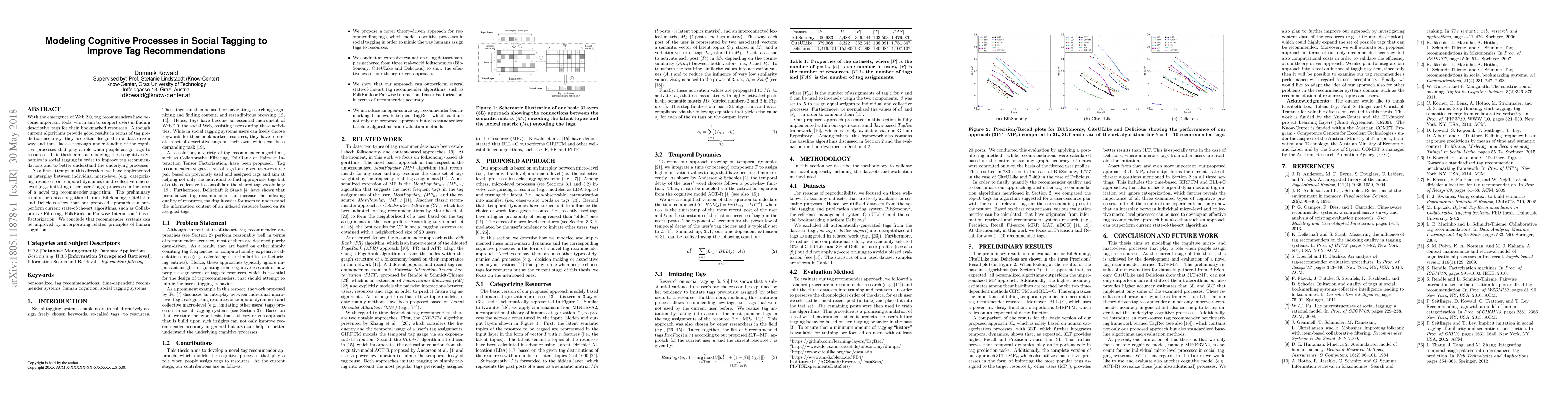 With the emergence of Web 2.0, tag recommenders have become important tools, which aim to support users in finding descriptive tags for their bookmarked resources. Although current algorithms provide good results in terms of tag prediction accuracy, they are often designed in a data-driven way and thus, lack a thorough understanding of the cognitive processes that play a role when people assign tags to resources. This thesis aims at modeling these cognitive dynamics in social tagging in order to improve tag recommendations and to better understand the underlying processes. As a first attempt in this direction, we have implemented an interplay between individual micro-level (e.g., categorizing resources or temporal dynamics) and collective macro-level (e.g., imitating other users' tags) processes in the form of a novel tag recommender algorithm. The preliminary results for datasets gathered from BibSonomy, CiteULike and Delicious show that our proposed approach can outperform current state-of-the-art algorithms, such as Collaborative Filtering, FolkRank or Pairwise Interaction Tensor Factorization. We conclude that recommender systems can be improved by incorporating related principles of human cognition.