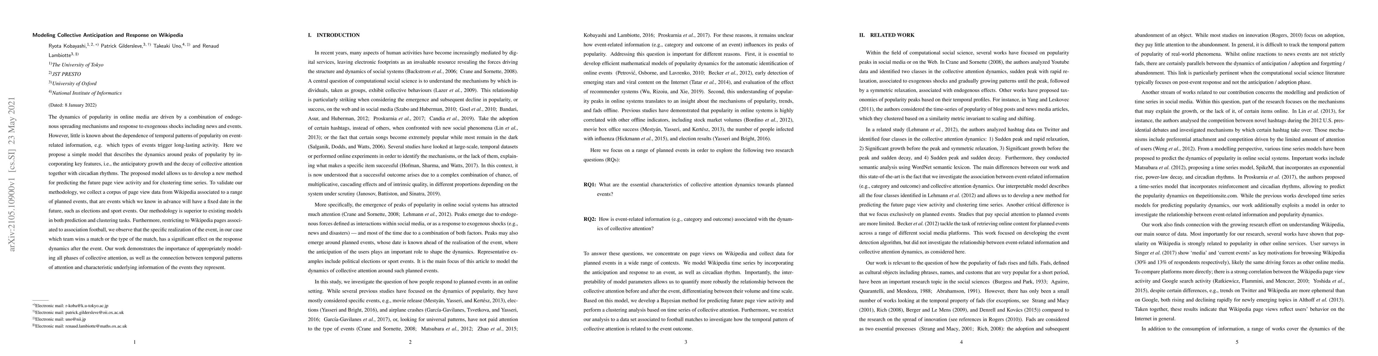 A model predicting Wikipedia page view activity after planned events shows improved performance in prediction and clustering tasks, highlighting the importance of modeling collective attention dynamics.