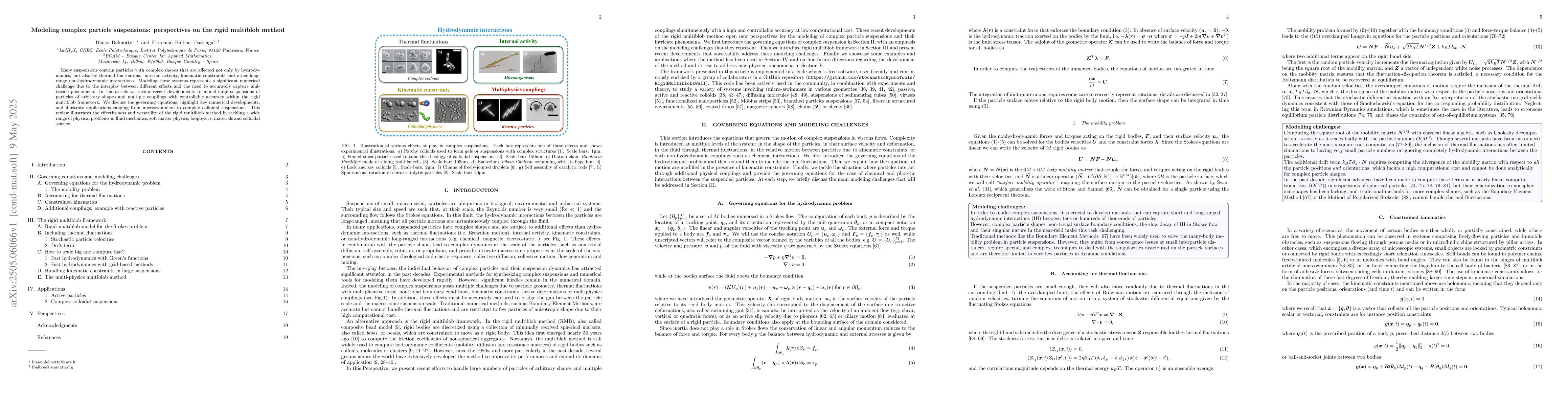 The research employs a review of recent developments in the rigid multiblob method for modeling complex particle suspensions, discussing governing equations, numerical advancements, and applications.
