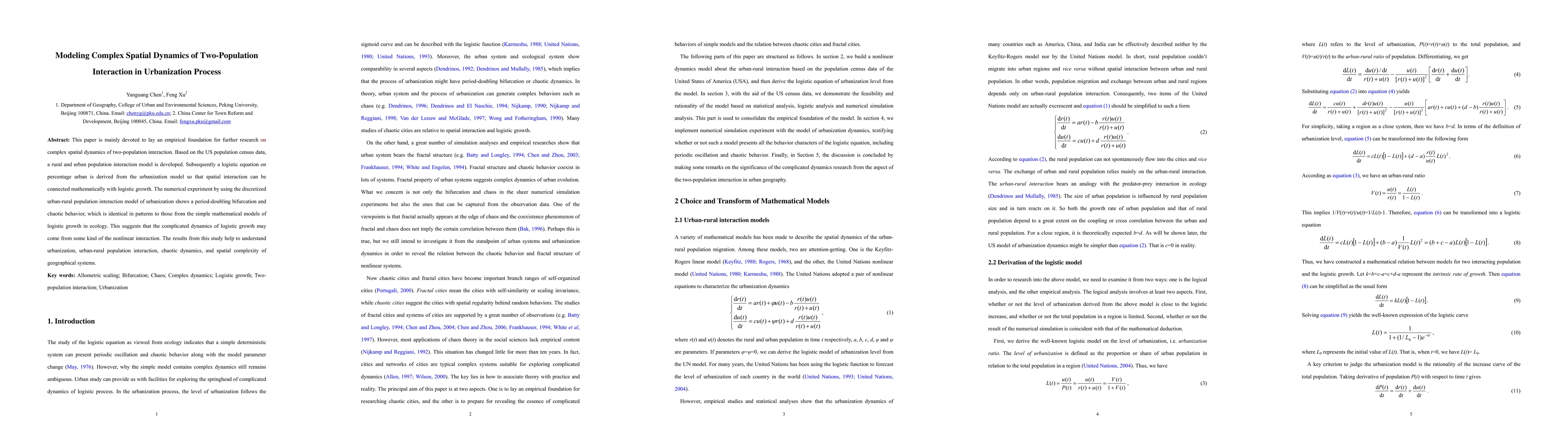 This paper develops a rural and urban population interaction model based on US census data, revealing period-doubling bifurcation and chaotic behavior akin to logistic growth dynamics, suggesting nonlinear interactions drive complex spatial dynamics in urbanization.