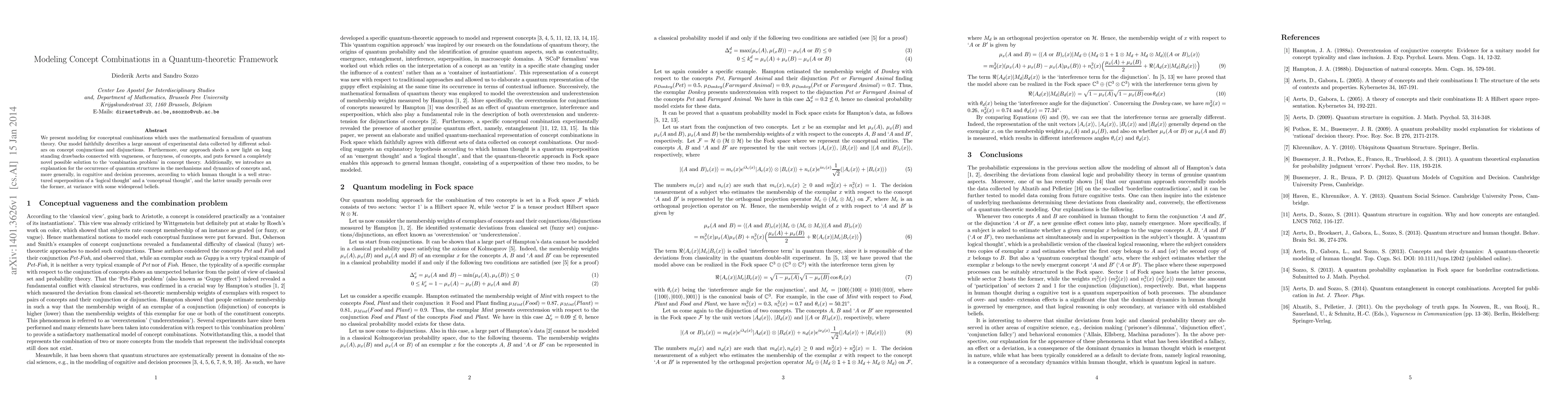 This paper models conceptual combinations using quantum theory's mathematical framework, addressing the 'combination problem' and explaining the occurrence of quantum structures in cognitive processes, suggesting a superposition of logical and conceptual thought.