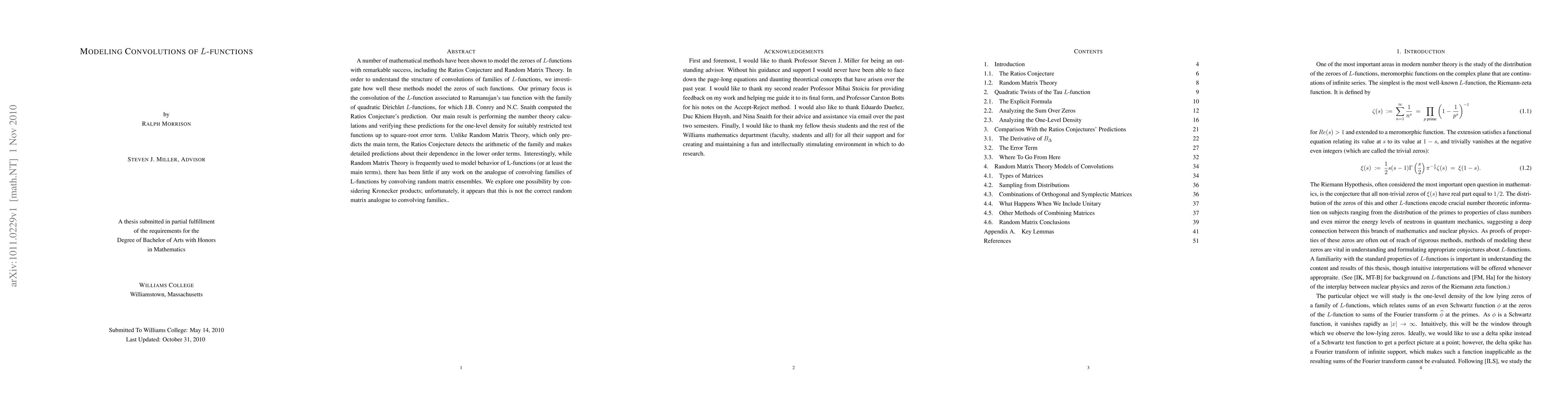 This paper investigates the modeling of convolutions of $L$-functions, focusing on the convolution of Ramanujan's tau function with quadratic Dirichlet $L$-functions. The Ratios Conjecture is shown to provide accurate predictions for the one-level density, outperforming Random Matrix Theory which only predicts the main term.