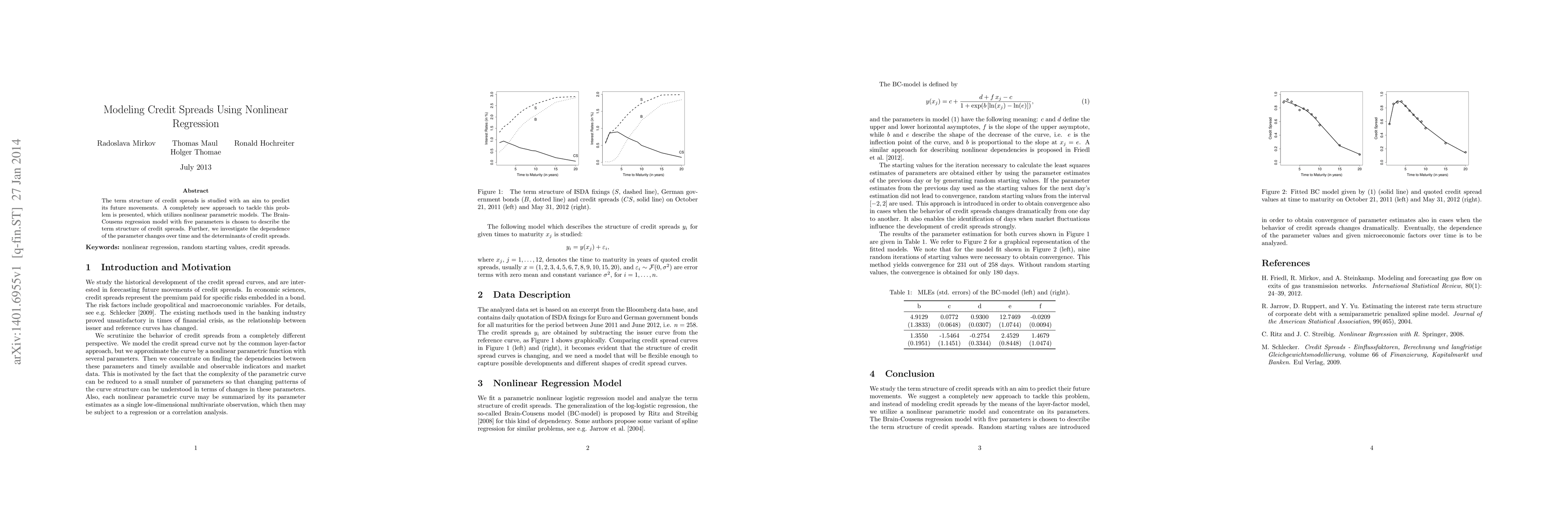 A new approach using nonlinear parametric models is used to predict future movements in credit spreads. The study focuses on the dependence of parameter changes over time and the determinants of credit spreads.