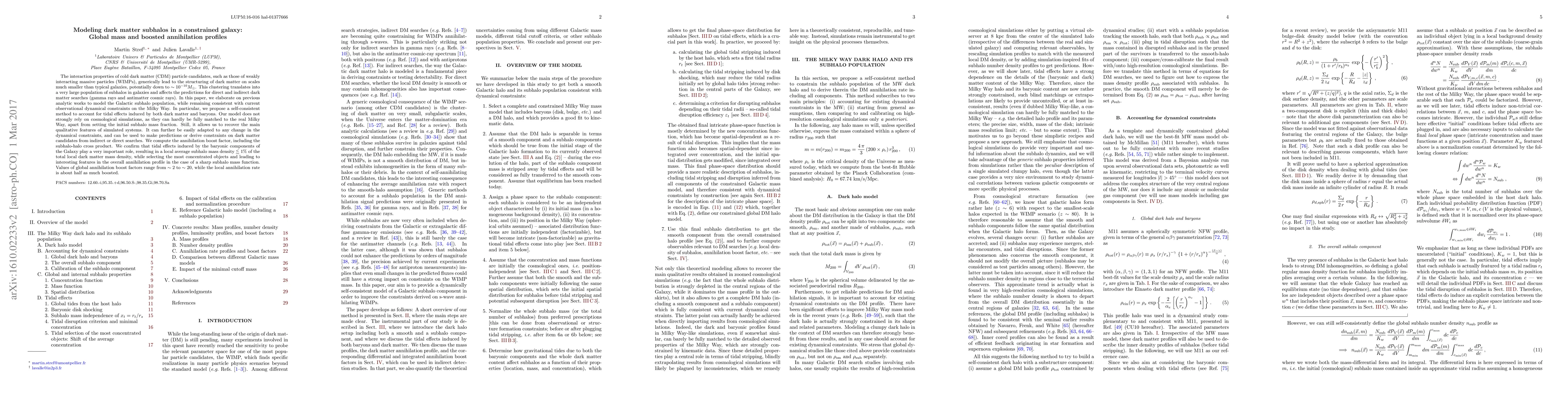 The interaction properties of cold dark matter (CDM) particle candidates, such as those of weakly interacting massive particles (WIMPs), generically lead to the structuring of dark matter on scales much smaller than typical galaxies, potentially down to $\sim 10^{-10}M_\odot$. This clustering translates into a very large population of subhalos in galaxies and affects the predictions for direct and indirect dark matter searches (gamma rays and antimatter cosmic rays). In this paper, we elaborate on previous analytic works to model the Galactic subhalo population, while consistently with current observational dynamical constraints on the Milky Way. In particular, we propose a self-consistent method to account for tidal effects induced by both dark matter and baryons. Our model does not strongly rely on cosmological simulations as they can hardly be fully matched to the real Milky Way, but for setting the initial subhalo mass fraction. Still, it allows to recover the main qualitative features of simulated systems. It can further be easily adapted to any change in the dynamical constraints, and be used to make predictions or derive constraints on dark matter candidates from indirect or direct searches. We compute the annihilation boost factor, including the subhalo-halo cross-product. We confirm that tidal effects induced by the baryonic components of the Galaxy play a very important role, resulting in a local average subhalo mass density $\lesssim 1\%$ of the total local dark matter mass density, while selecting in the most concentrated objects and leading to interesting features in the overall annihilation profile in the case of a sharp subhalo mass function. Values of global annihilation boost factors range from $\sim 2$ to $\sim 20$, while the local annihilation rate is about half as much boosted.