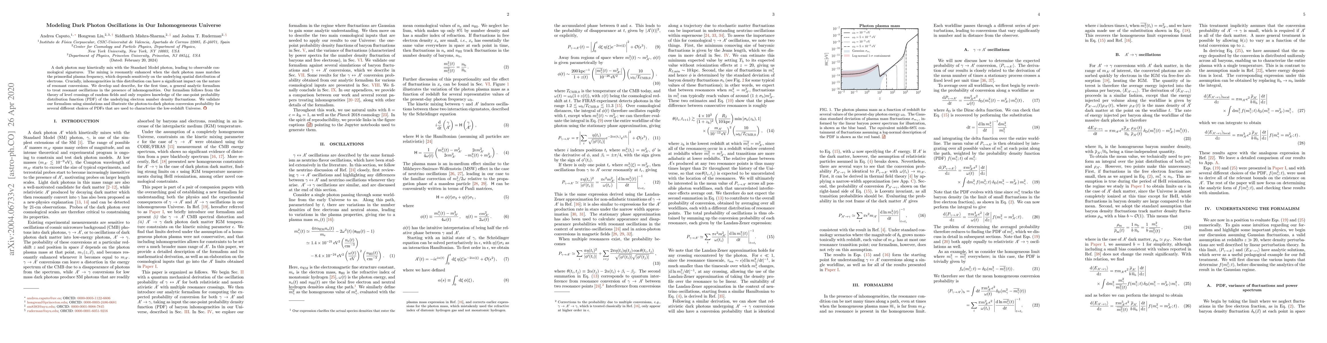 This paper develops a novel analytic formalism to model dark photon oscillations in an inhomogeneous universe, focusing on resonant conversions enhanced by kinetic mixing with Standard Model photons. The study validates the formalism using simulations and demonstrates its application to different electron density distributions representative of the low-redshift universe.