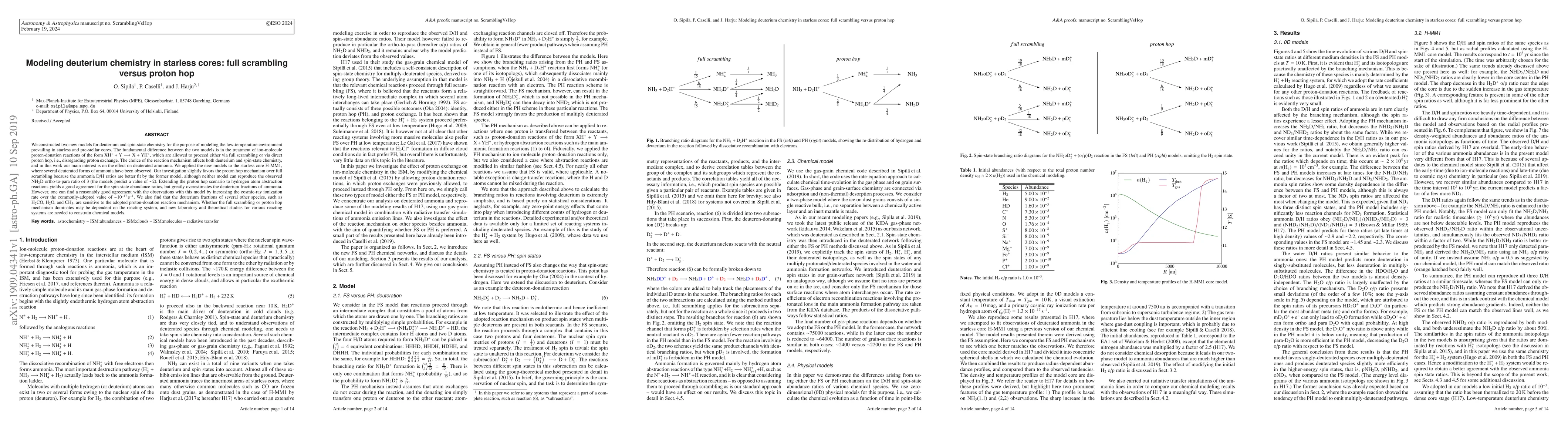 This paper models deuterium chemistry in starless cores using two different mechanisms for ion-molecule proton-donation reactions: full scrambling versus direct proton hop. The proton hop mechanism better fits observed deuterated ammonia D/H ratios in the H-MM1 core but struggles with the ortho-to-para ratio of $\rm NH_2D$. Further adjustments to cosmic-ray ionization rates may improve model predictions.