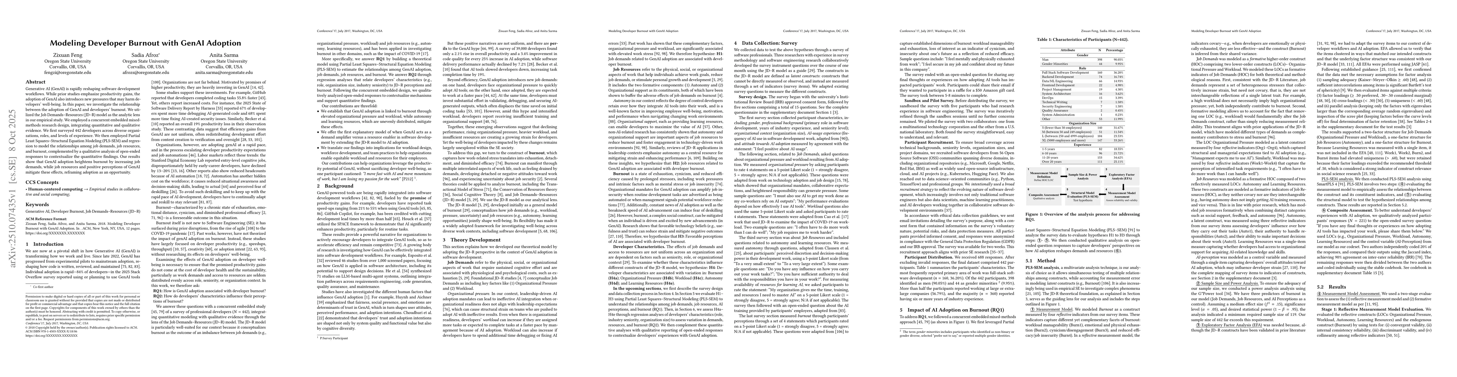 This research provides critical insights into how GenAI adoption is transforming software development practices and impacting developer well-being, offering actionable guidance for organizations to mitigate burnout and redesign work processes effectively.