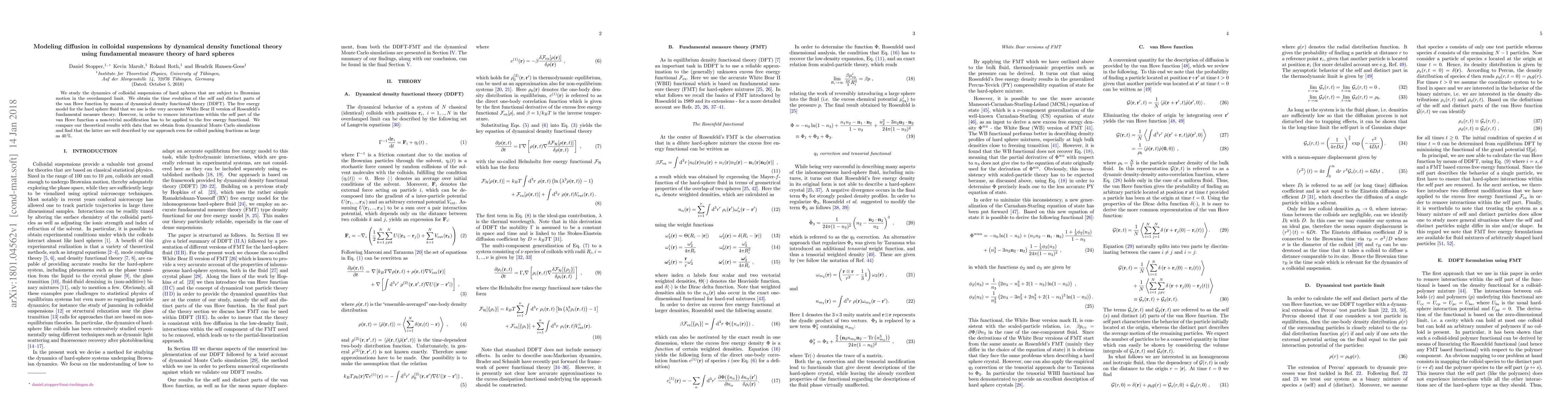 This research models the diffusion dynamics in colloidal suspensions of hard spheres via dynamical density functional theory, employing the White Bear II version of Rosenfeld's fundamental measure theory. It reveals accurate agreement between theoretical predictions and Monte Carlo simulation data, even for high packing fractions up to 40%.