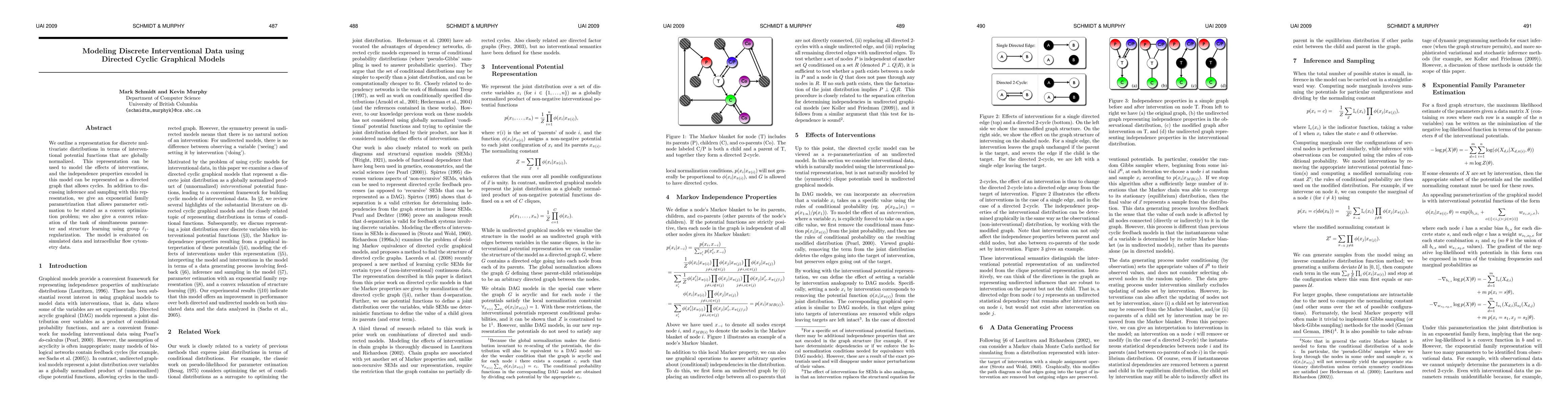 We outline a representation for discrete multivariate distributions in terms of interventional potential functions that are globally normalized. This representation can be used to model the effects of interventions, and the independence properties encoded in this model can be represented as a directed graph that allows cycles. In addition to discussing inference and sampling with this representation, we give an exponential family parametrization that allows parameter estimation to be stated as a convex optimization problem; we also give a convex relaxation of the task of simultaneous parameter and structure learning using group l1-regularization. The model is evaluated on simulated data and intracellular flow cytometry data.