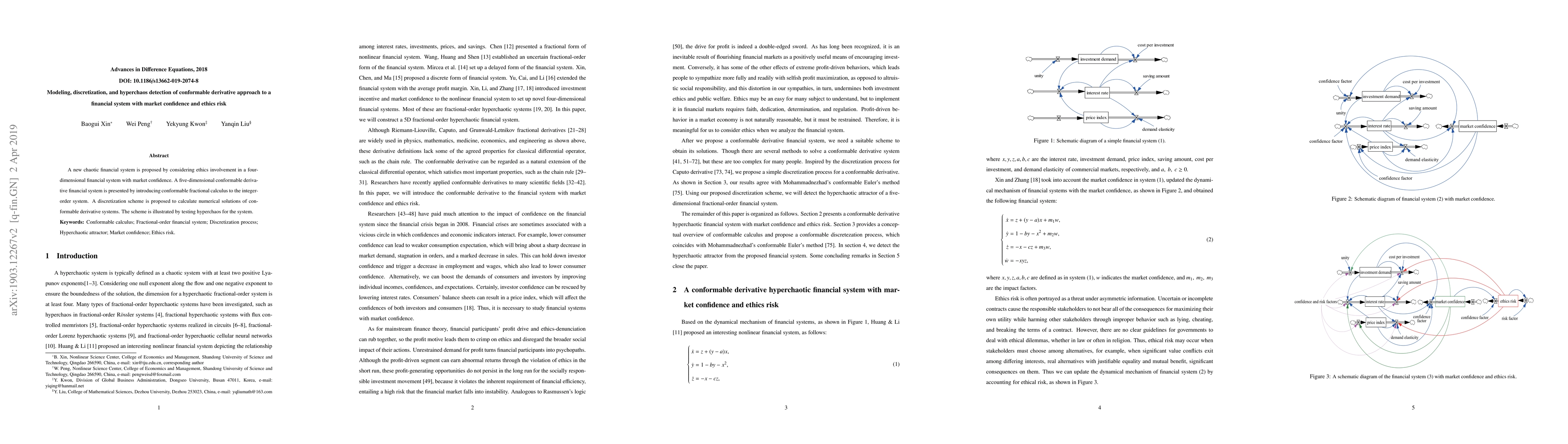 This paper introduces a five-dimensional financial system using conformable fractional calculus to model market confidence and ethical risks. It proposes a discretization scheme to numerically solve the system and tests for hyperchaos.