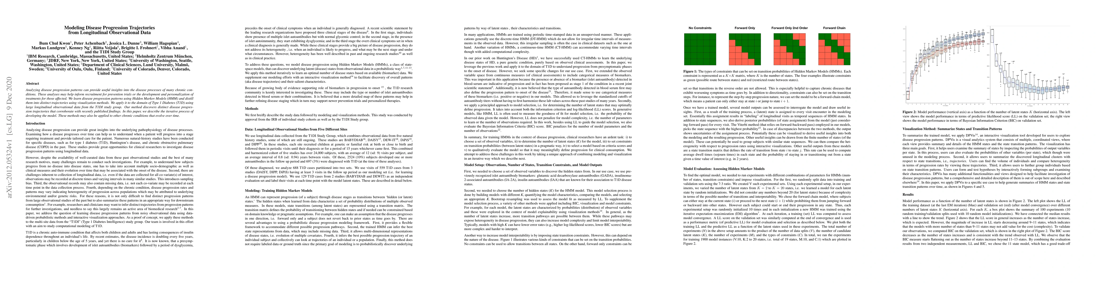This paper develops Hidden Markov Models to analyze and visualize disease progression trajectories from longitudinal observational data, specifically applied to Type 1 Diabetes. The study identifies distinct progression patterns that align with recent findings, demonstrating potential for broader application to other chronic conditions.