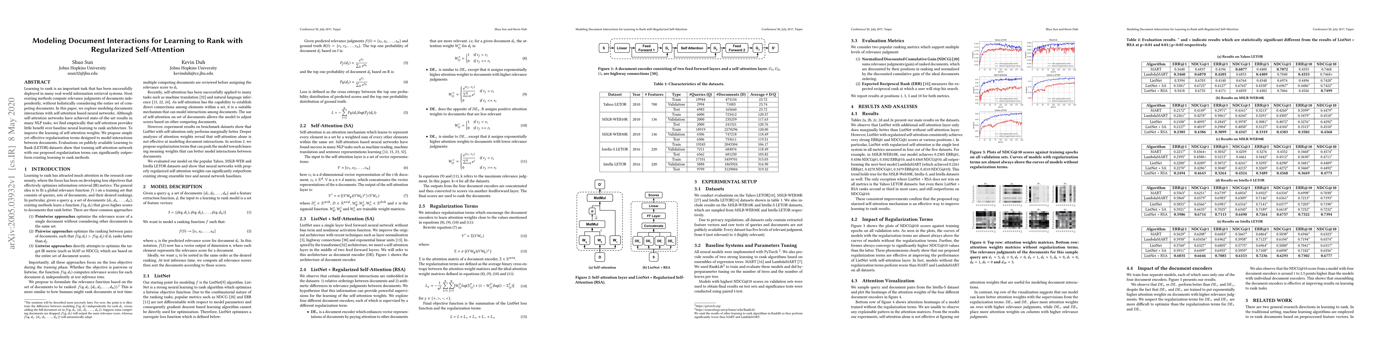 Learning to rank is an important task that has been successfully deployed in many real-world information retrieval systems. Most existing methods compute relevance judgments of documents independently, without holistically considering the entire set of competing documents. In this paper, we explore modeling documents interactions with self-attention based neural networks. Although self-attention networks have achieved state-of-the-art results in many NLP tasks, we find empirically that self-attention provides little benefit over baseline neural learning to rank architecture. To improve the learning of self-attention weights, We propose simple yet effective regularization terms designed to model interactions between documents. Evaluations on publicly available Learning to Rank (LETOR) datasets show that training self-attention network with our proposed regularization terms can significantly outperform existing learning to rank methods.
