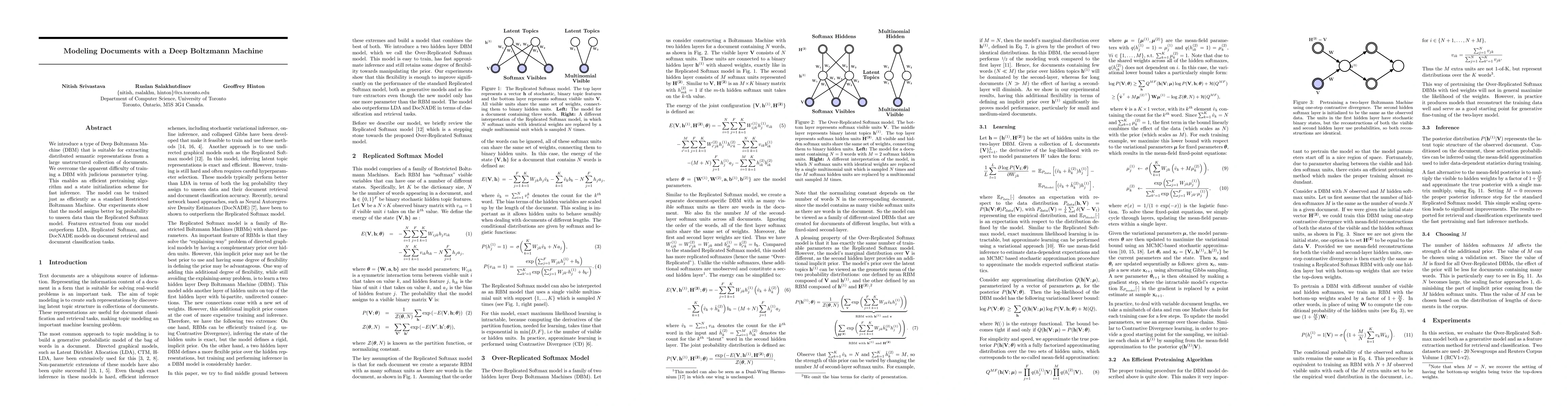 This paper proposes a Deep Boltzmann Machine model for extracting latent semantic representations from large document collections, utilizing efficient parameter tying for training. The model outperforms other methods in document retrieval and classification tasks.