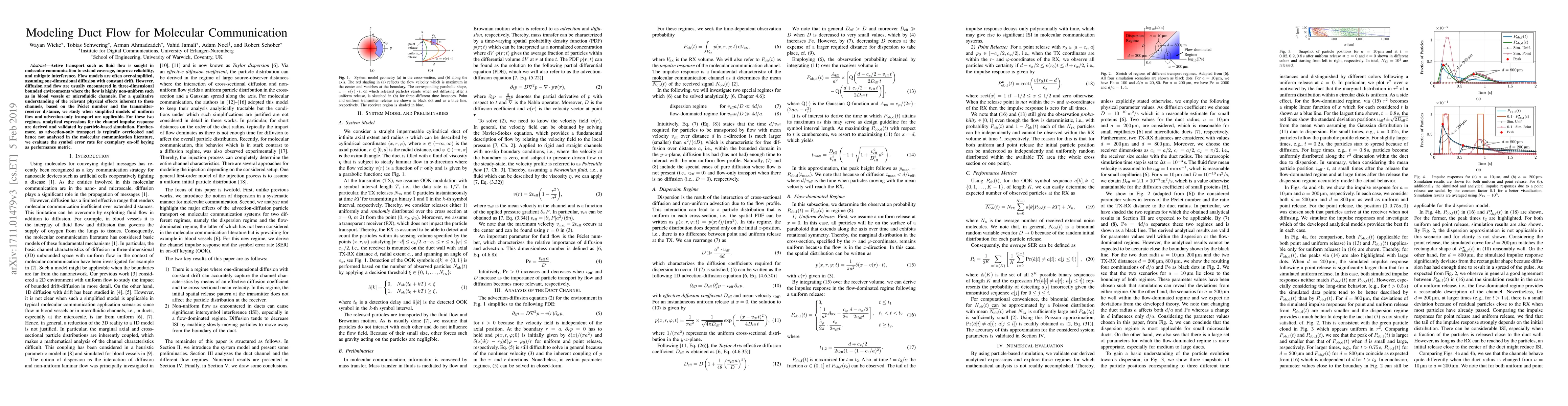 This paper models duct flow in molecular communication to enhance coverage and reliability, addressing the limitations of over-simplified flow models. It derives analytical expressions for channel impulse response under uniform flow and advection-only transport, validated by simulations, and evaluates the symbol error rate for on-off keying in these regimes.