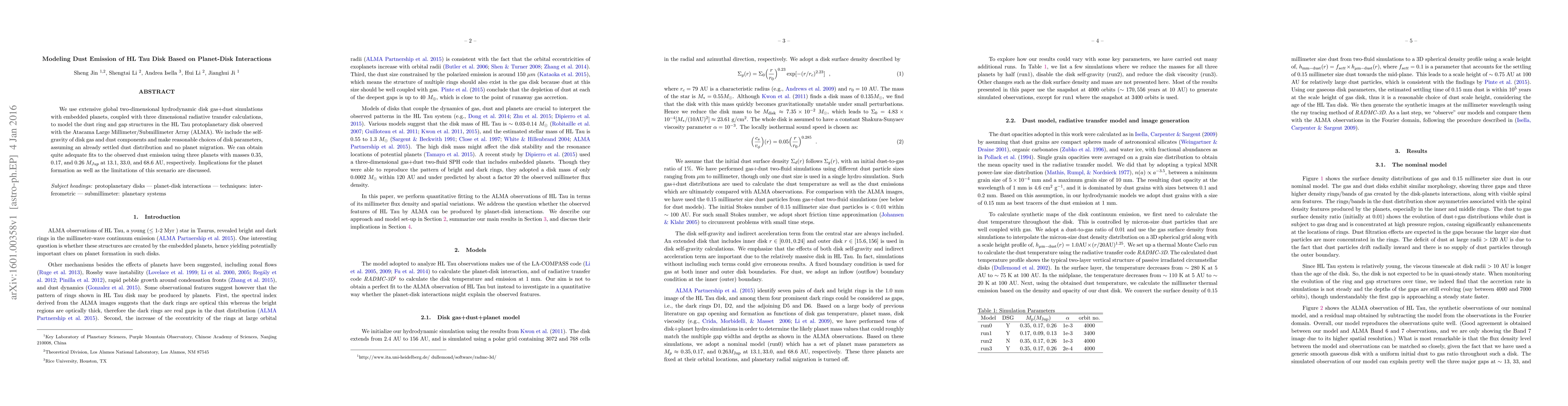 This paper models the dust emission of HL Tau's disk using hydrodynamic simulations with embedded planets, achieving good fits to ALMA observations. The study finds three planets at 13.1, 33.0, and 68.6 AU can explain the observed dust ring and gap structures, highlighting the implications for planet formation.